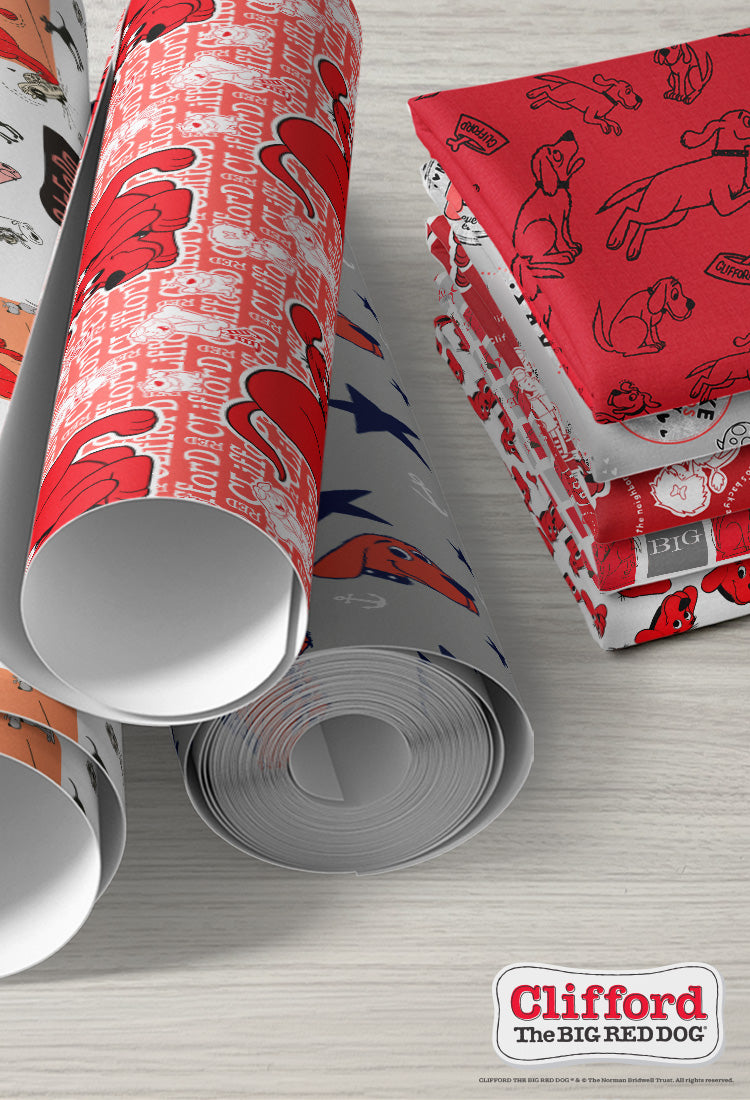 Fabric and wallpaper inspired by the biggest, reddest dog around!
