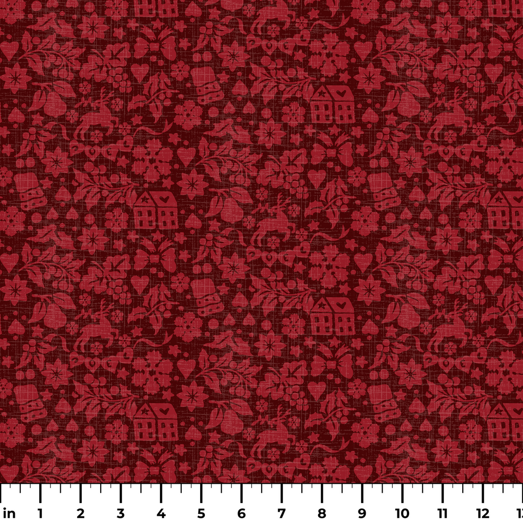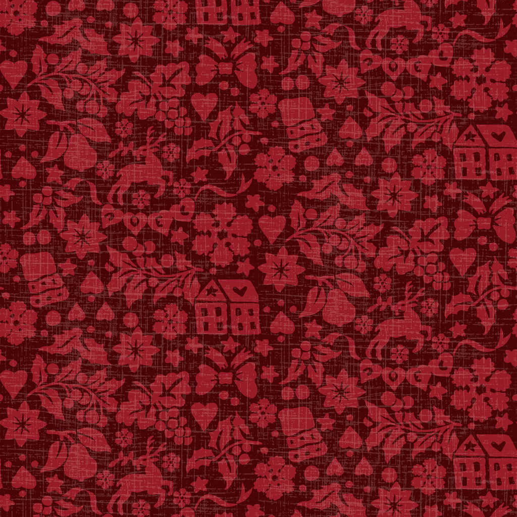 This rich burgundy red design features a traditional holiday motifs with intricate botanical elements. Perfect for quilting, home decor, or holiday crafting projects.