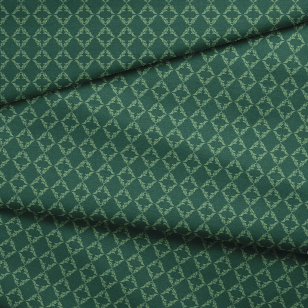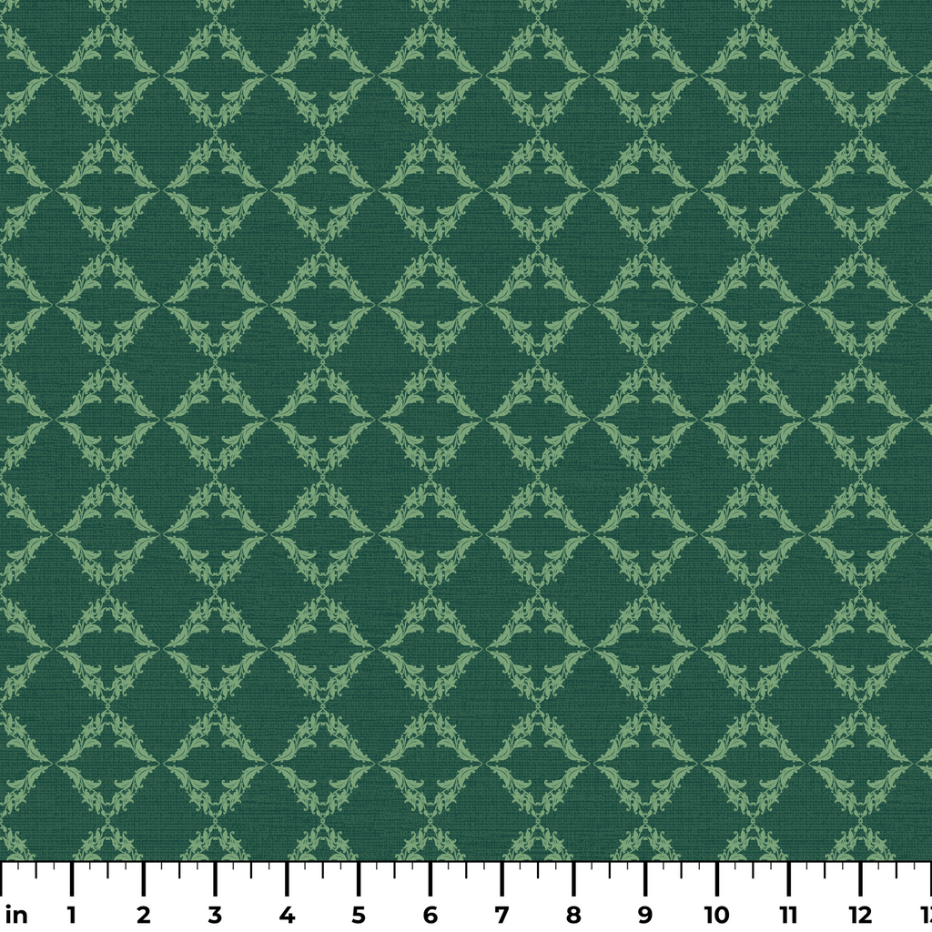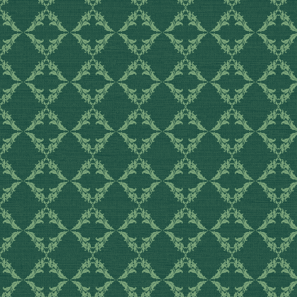 This elegant green trellis pattern features a classic damask-inspired design, perfect for winter home decor. The textured, traditional motif creates a sophisticated look for any space.