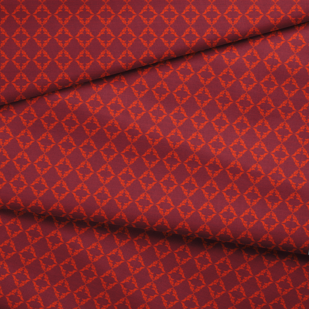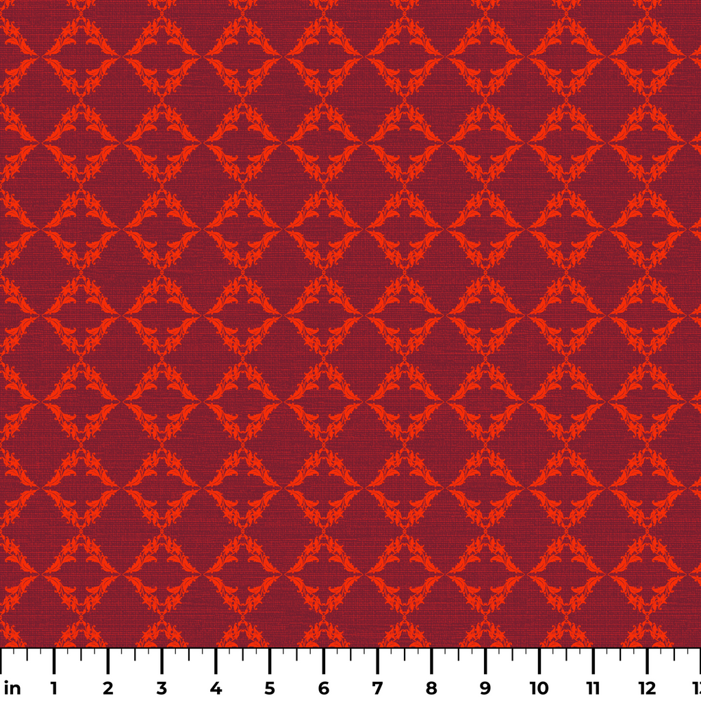 This elegant red trellis pattern features a classic damask-inspired design, perfect for winter home decor. The textured, traditional motif creates a sophisticated look for any space.