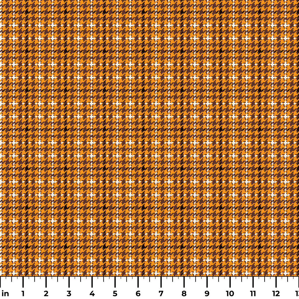 Classic houndstooth pattern in warm gold and brown tones with white accents, creating a timeless geometric design perfect for traditional seasonal home decor and crafts.