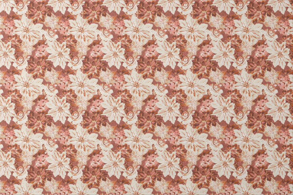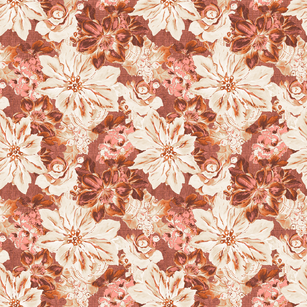Vibrant Christmas floral pattern featuring bold brown poinsettias, delicate cream blooms and festive greenery in a traditional holiday design perfect for seasonal home decor and crafts.