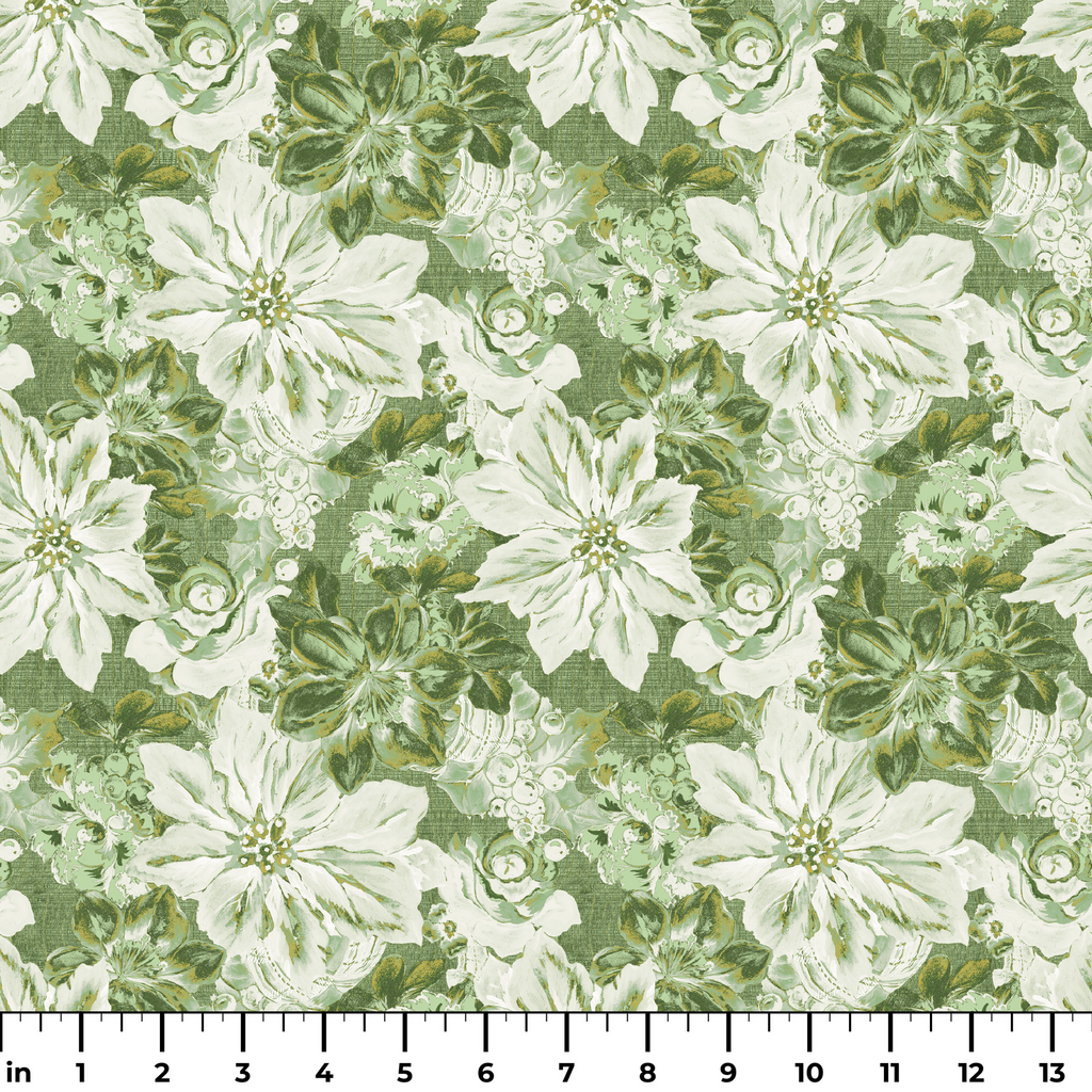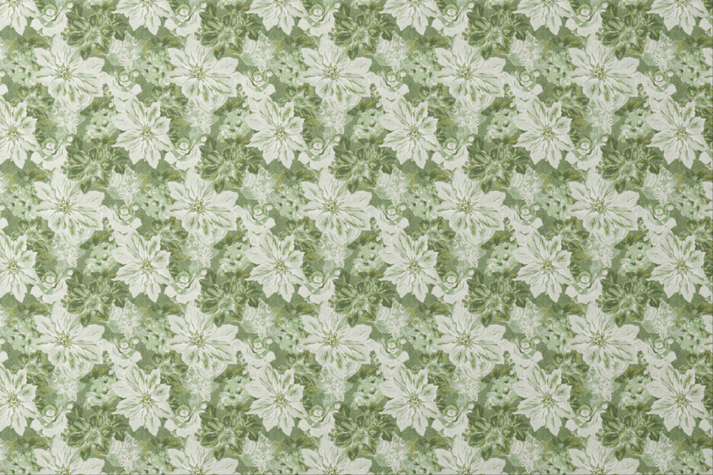 Vibrant Christmas floral pattern featuring bold green poinsettias, delicate white blooms and festive greenery in a traditional holiday design perfect for seasonal home decor and crafts.