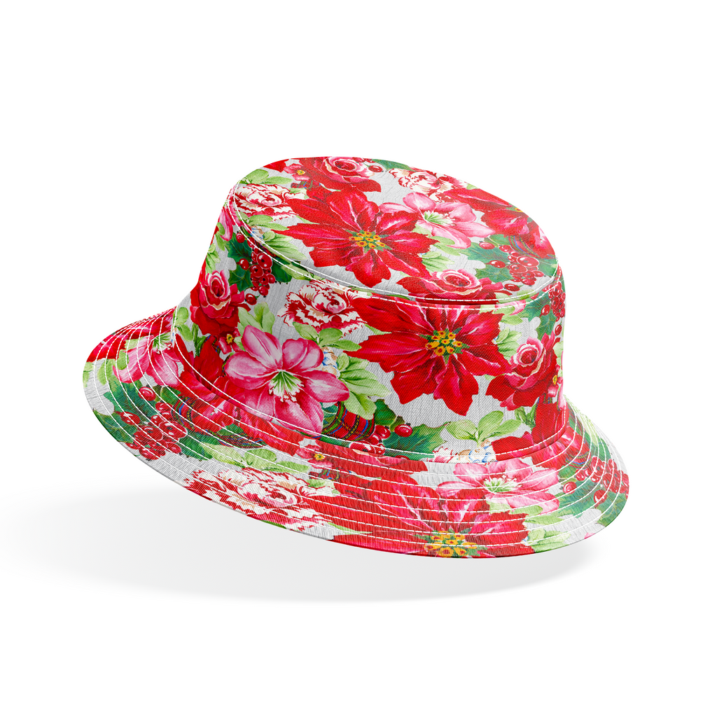 Packed Poinsettias on Red Fabric