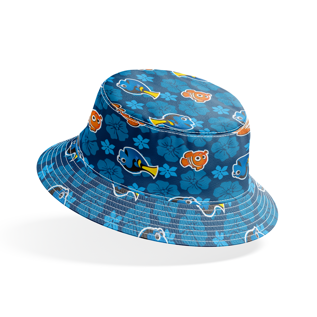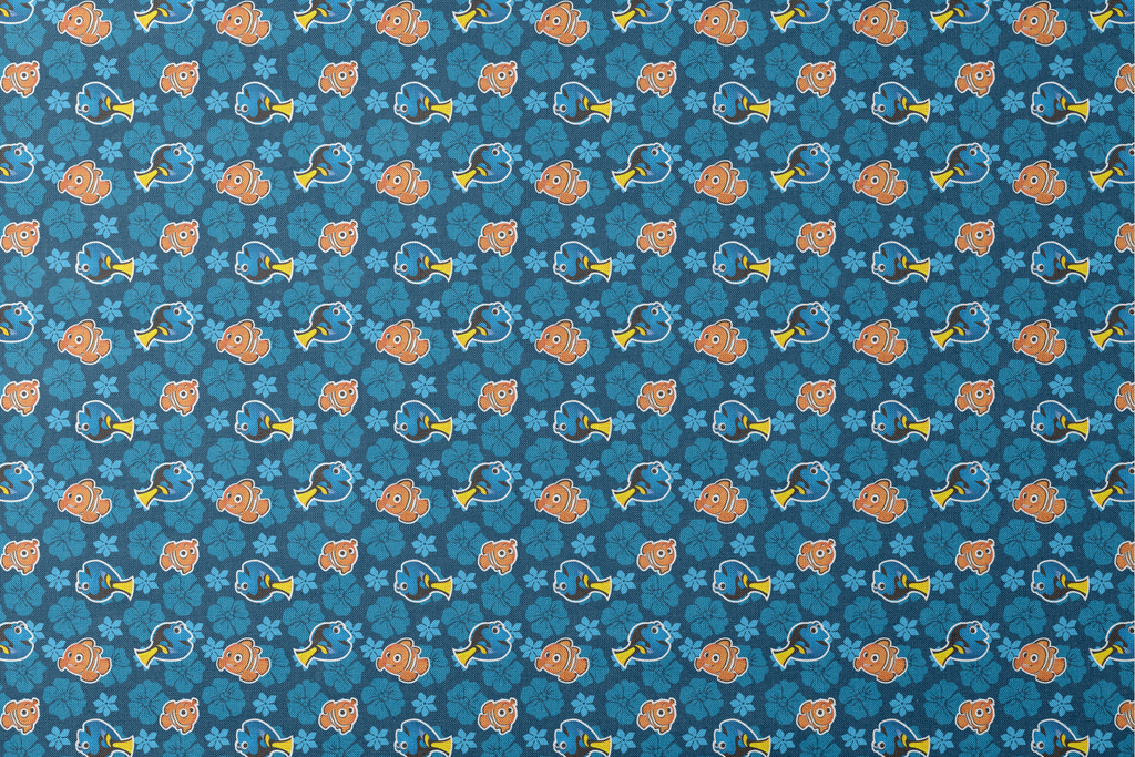 Disney Finding Nemo Fish on Blue Floral Fabric