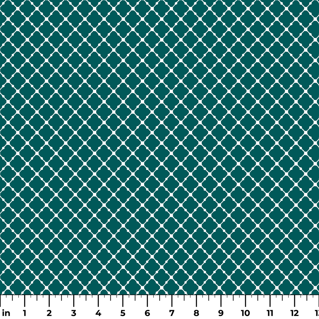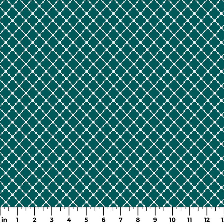 Elegant teal lattice pattern on white background creates a stylish geometric design. Perfect for contemporary home decor or trendy upholstery projects.