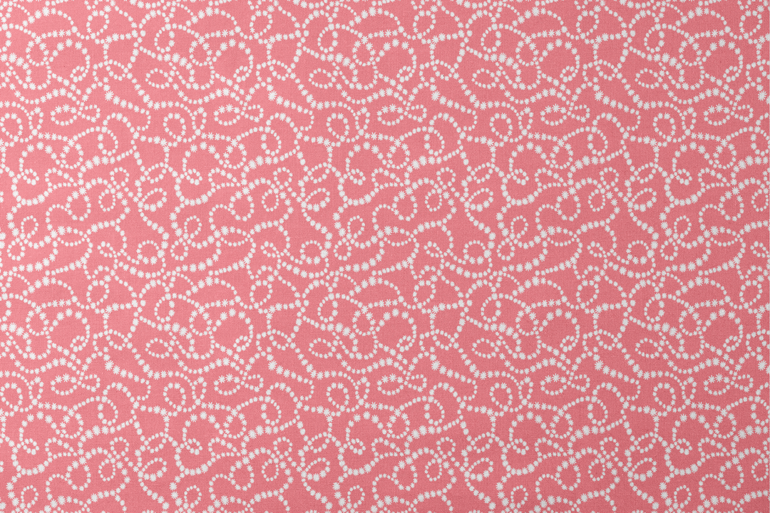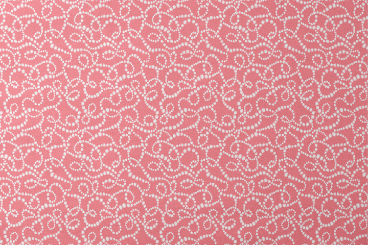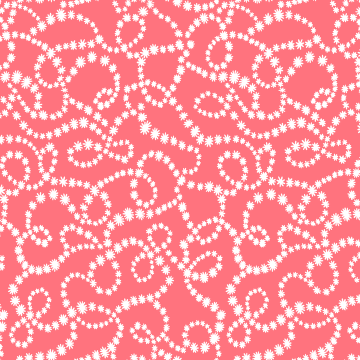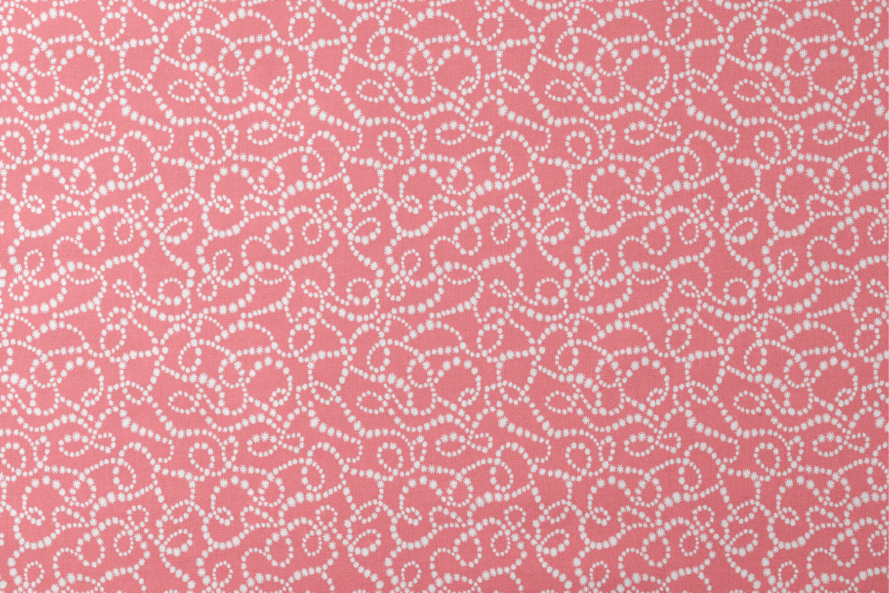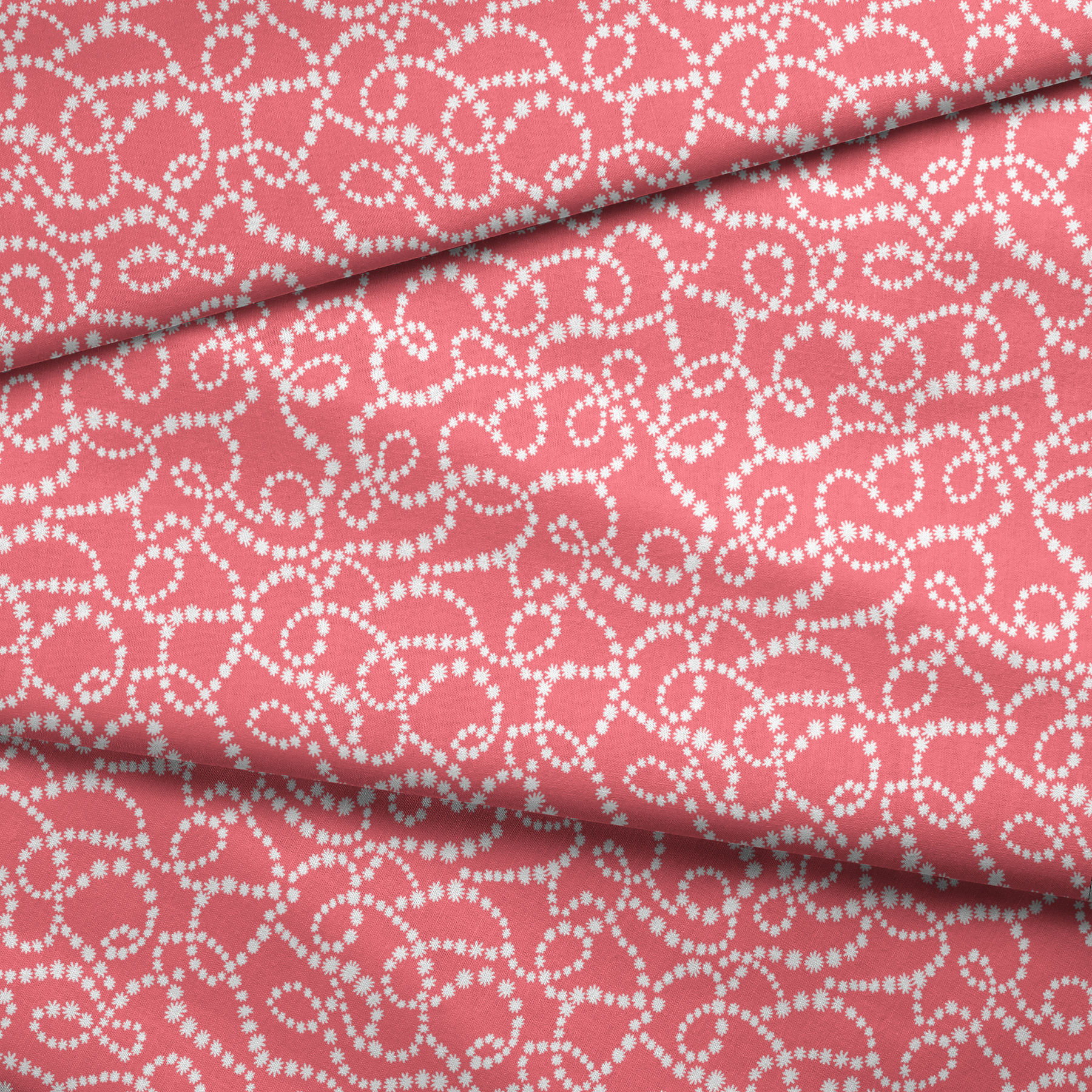 This pretty contemporary pattern features swirling dotted lines creating flowing organic shapes on a vibrant coral background, perfect for home decor or apparel.