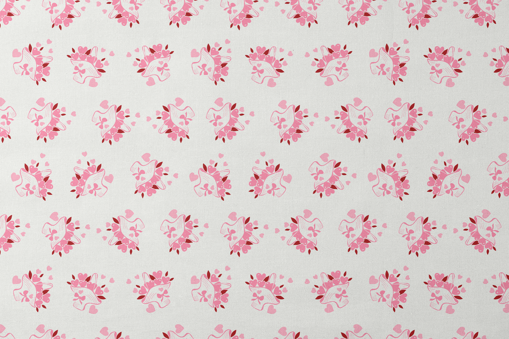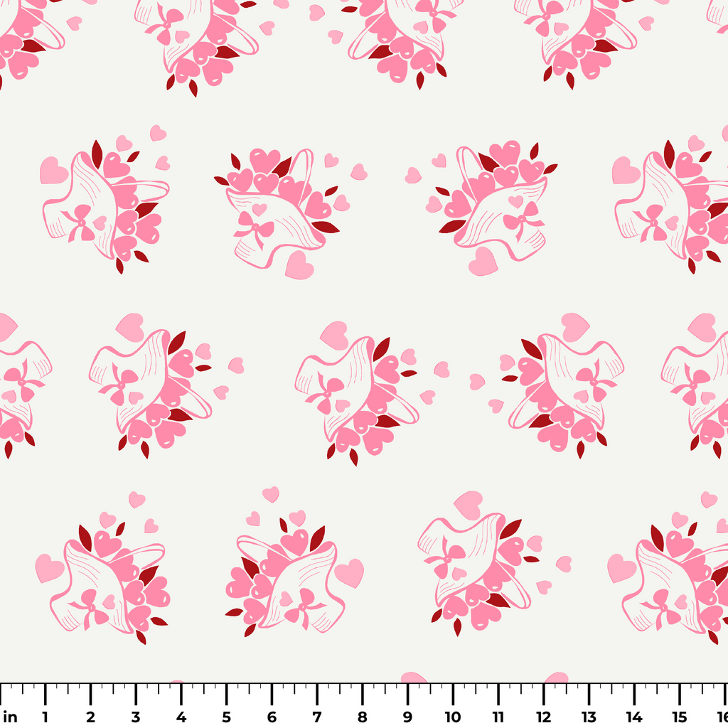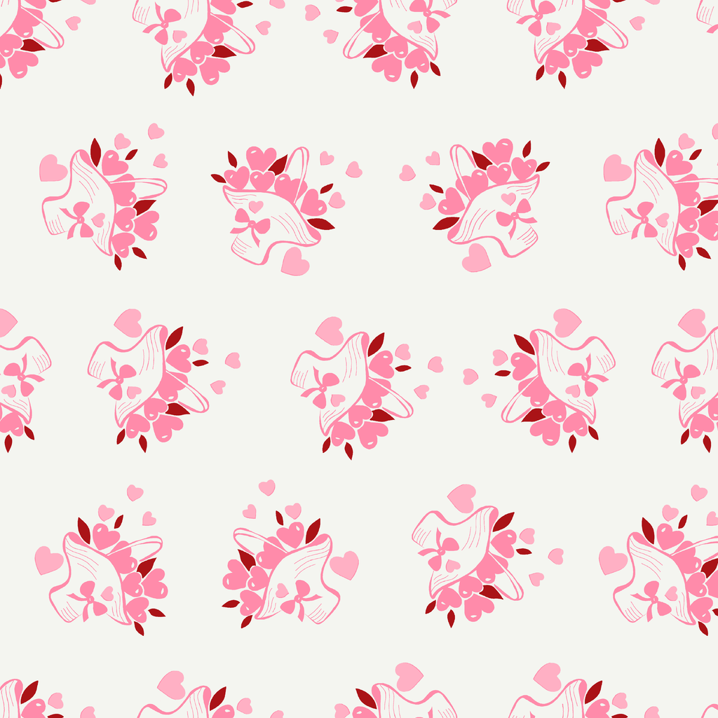 Delicate pink heart floral arrangements on a soft ivory background create a romantic pattern perfect for apparel, home decor, or Valentine's Day and wedding season projects.