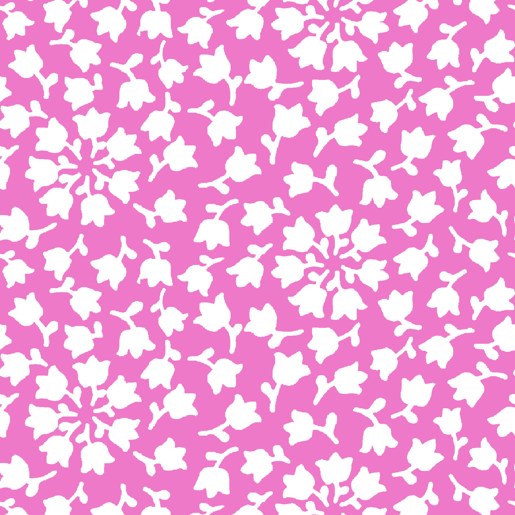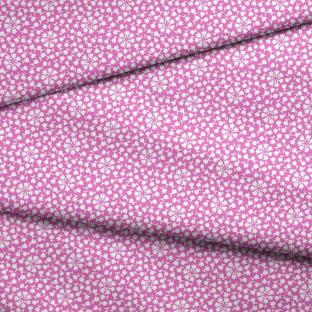 Vibrant fuchsia and white floral pattern featuring delicate blossoms and starburst designs. Perfect for summer apparel, wedding season, or nature-inspired home decor.