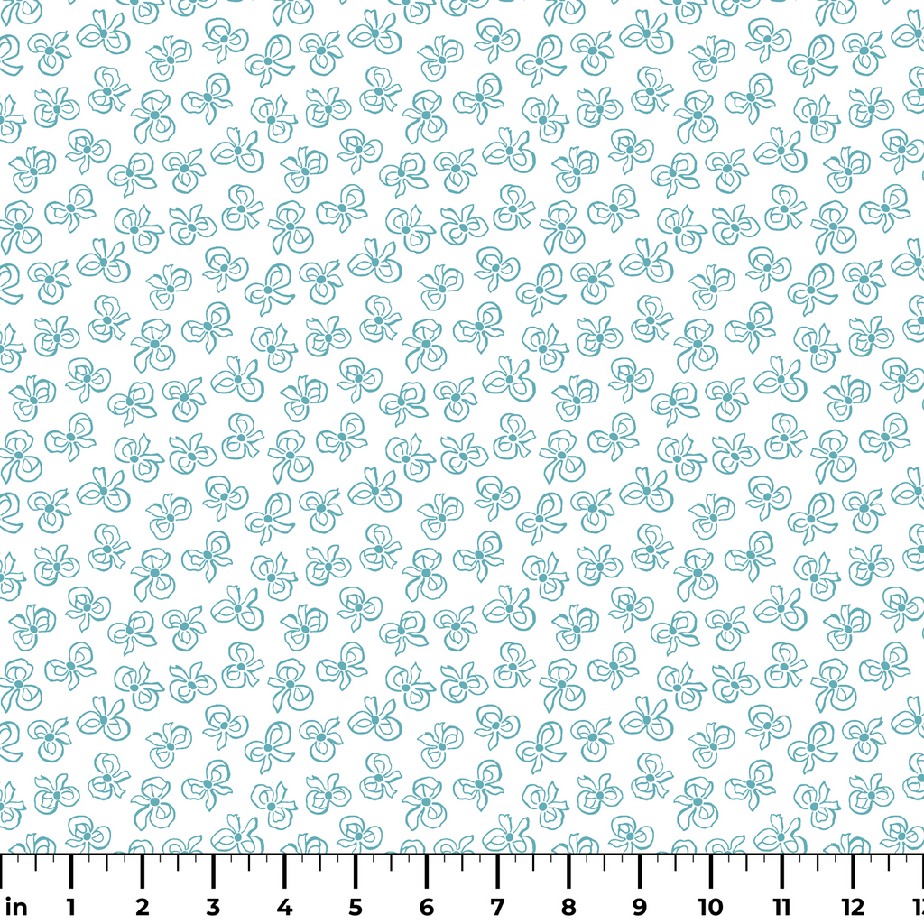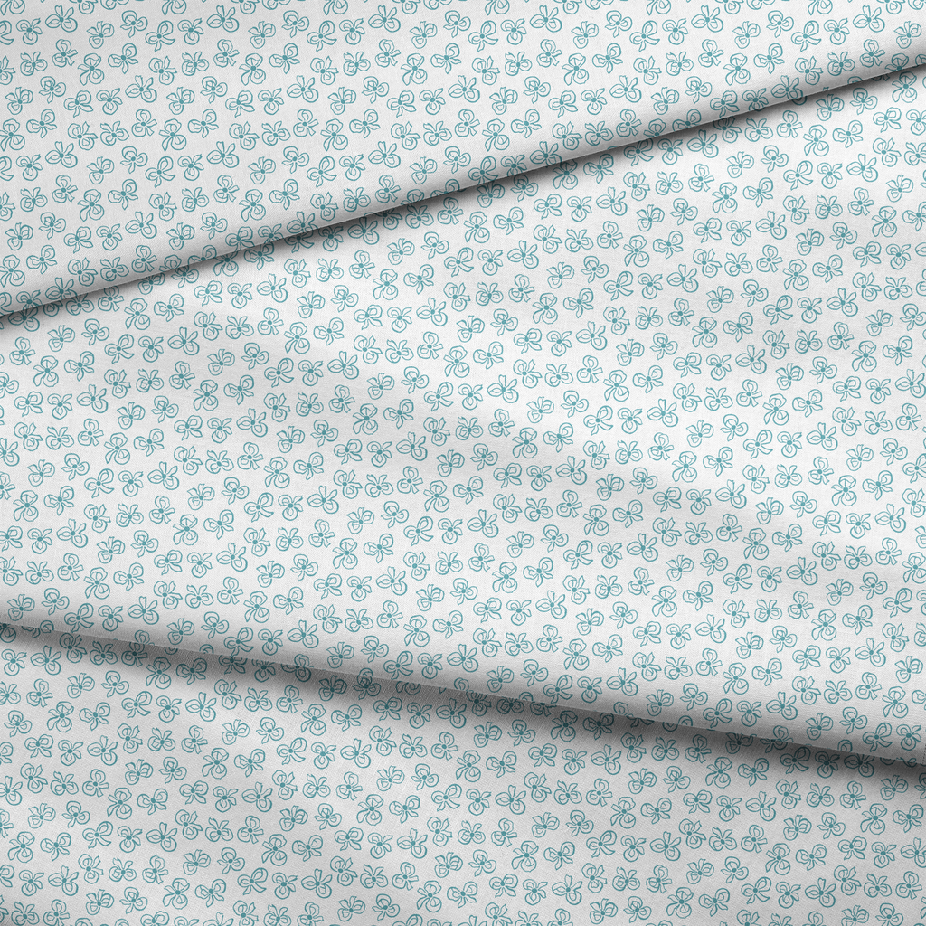 Delicate teal floral sketches dance across a white background, featuring abstract, free-flowing blooms in a whimsical, hand-drawn style perfect for contemporary home decor and apparel.