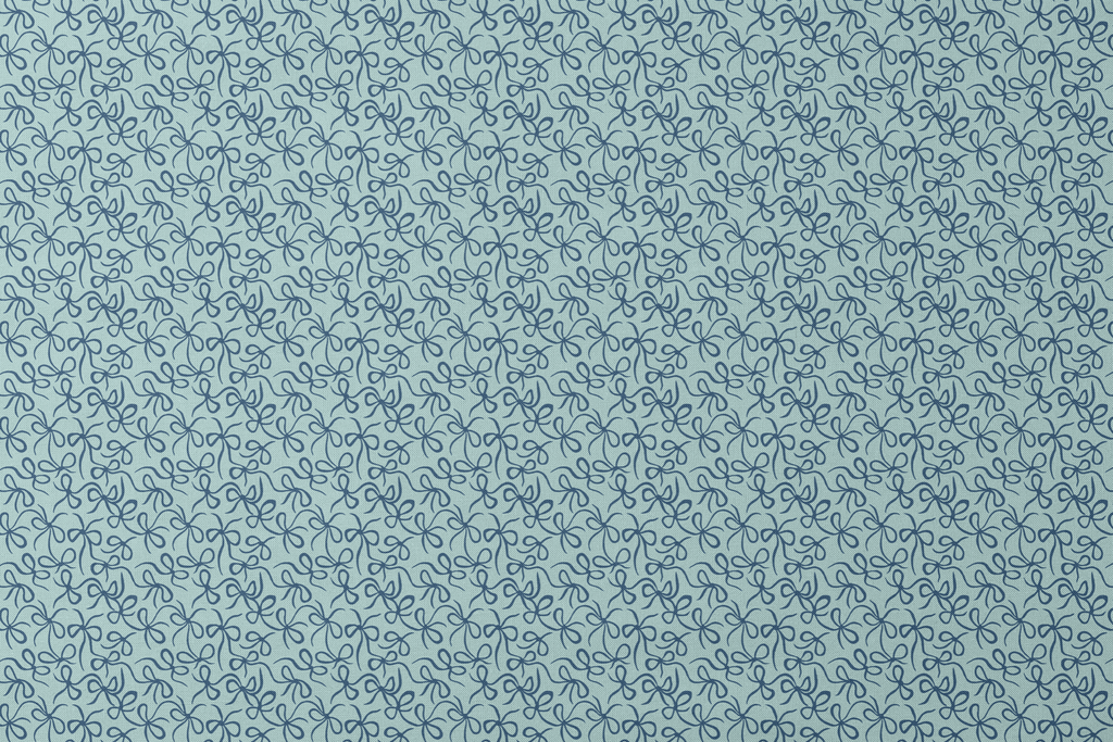 Delicate navy blue floral swirls on a soothing aqua background create a contemporary design with flowing organic forms, perfect for home decor or apparel.