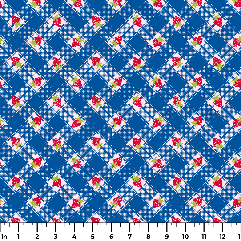 Berry Picnic - Blue Plaid Strawberry Fabric