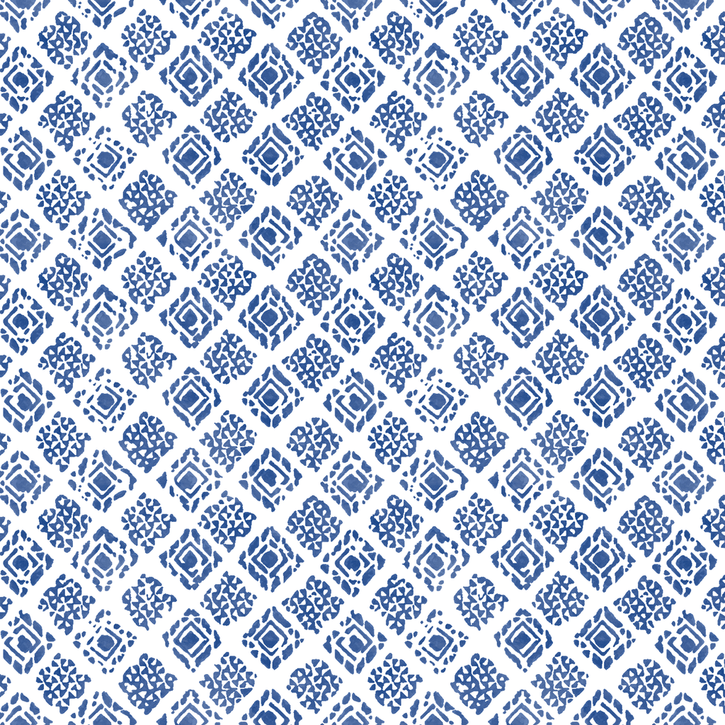 This elegant blue and white pattern features intricate geometric motifs in a traditional Mediterranean style, perfect for adding a touch of coastal charm to any space.