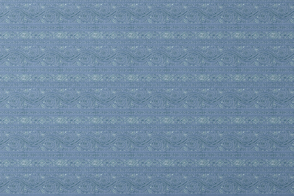 Intricate blue floral and paisley pattern featuring delicate swirls, curves, and traditional motifs. The embossed texture creates a heritage feel perfect for home decor.