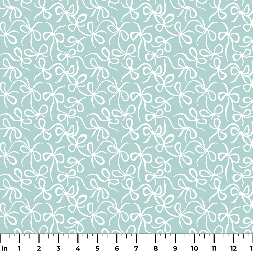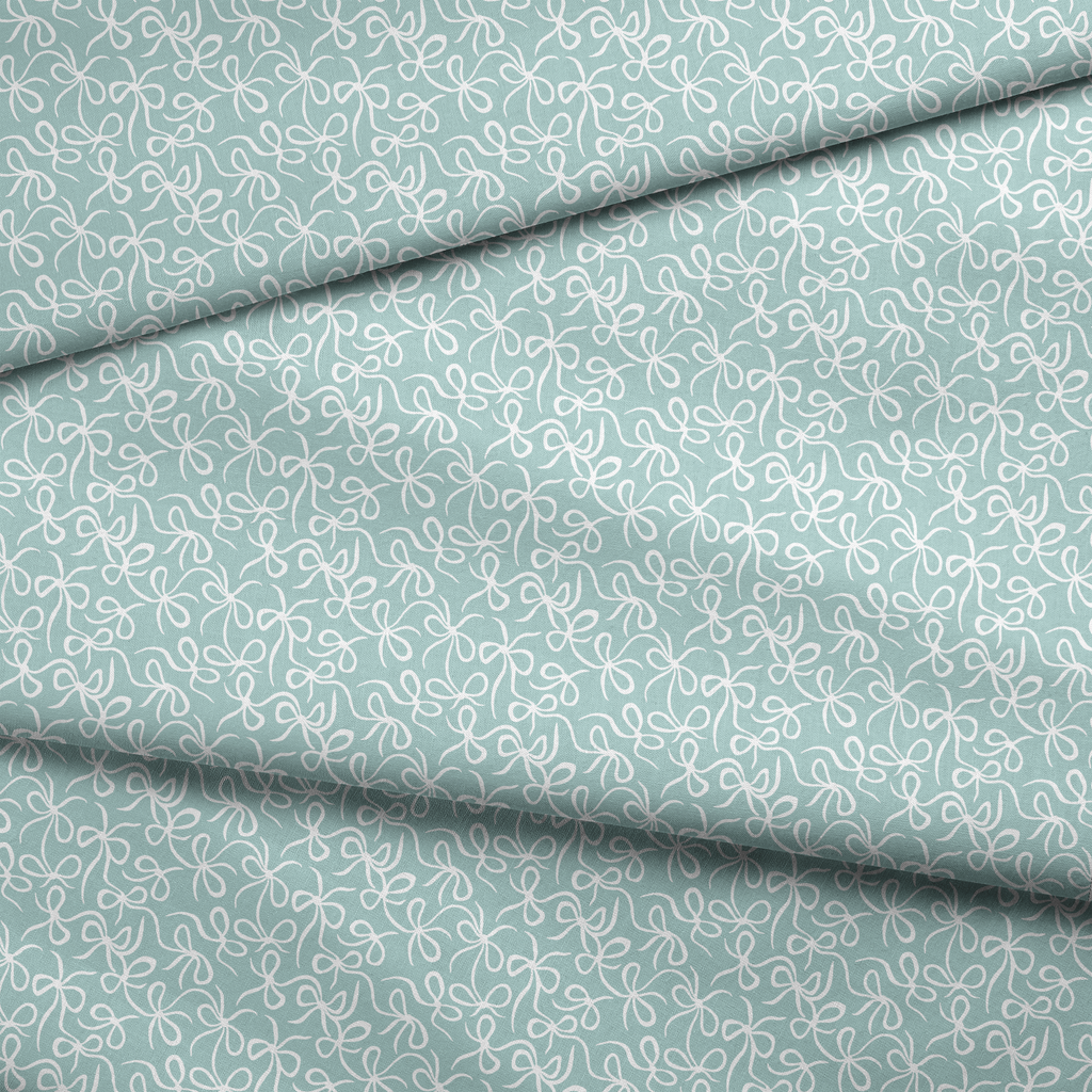 Delicate white ribbons dance across a serene mint background in this whimsical pattern featuring flowing organic shapes and curved lines - perfect for contemporary home decor or spring apparel.