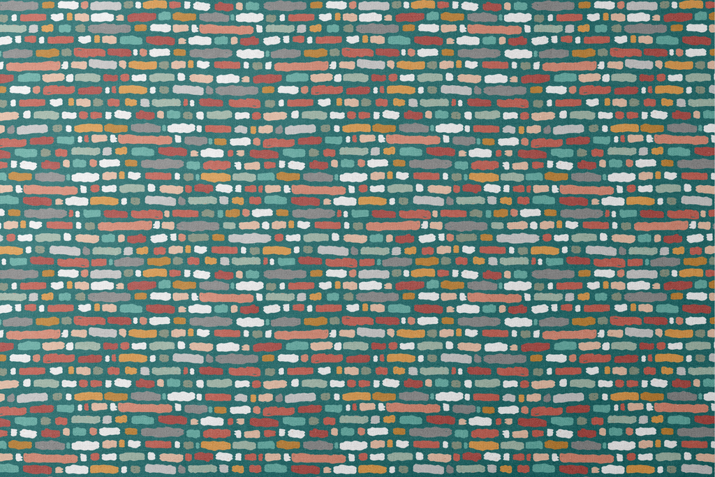 Vibrant colorful brick pattern with a modern geometric design in teal, rust, and white creates a contemporary feel for home decor, perfect for adding a bold architectural element to any space.
