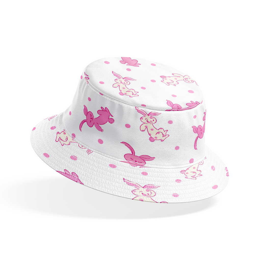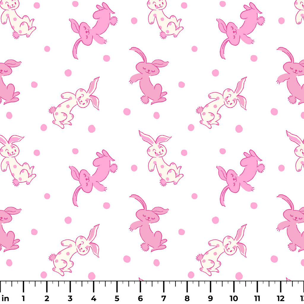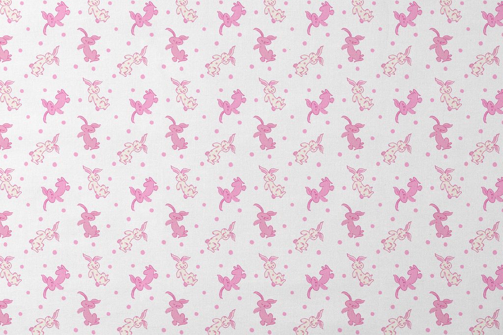 Sweet pink bunnies bounce playfully across this whimsical pattern, creating a charming and delightful design perfect for nursery decor or playful quilts.