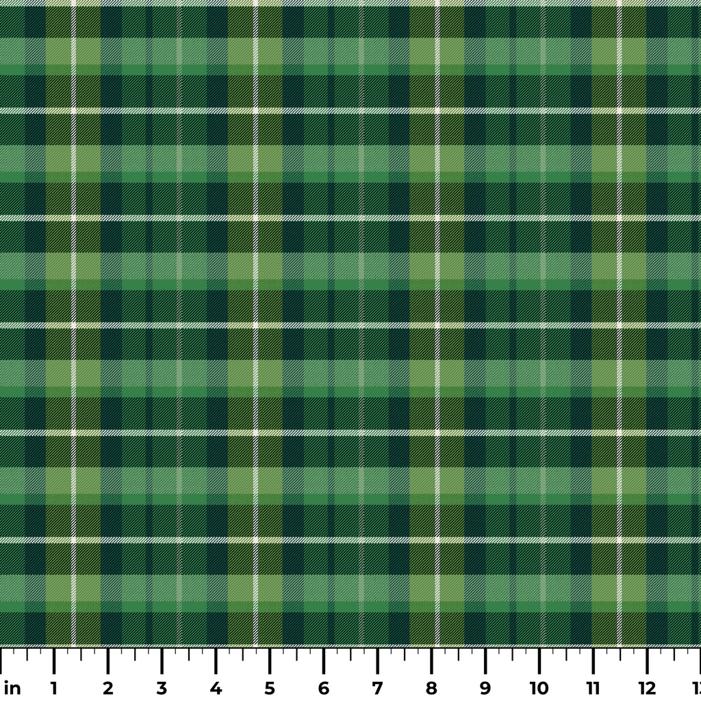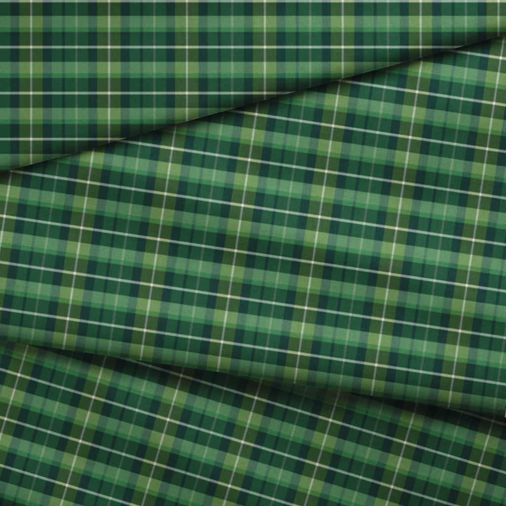 Rich plaid pattern featuring deep green, navy, and cream tones. Perfect for heritage-inspired apparel or home decor with a classic winter tartan feel.