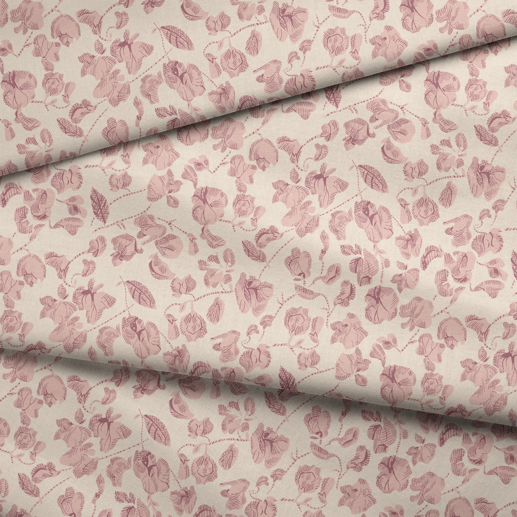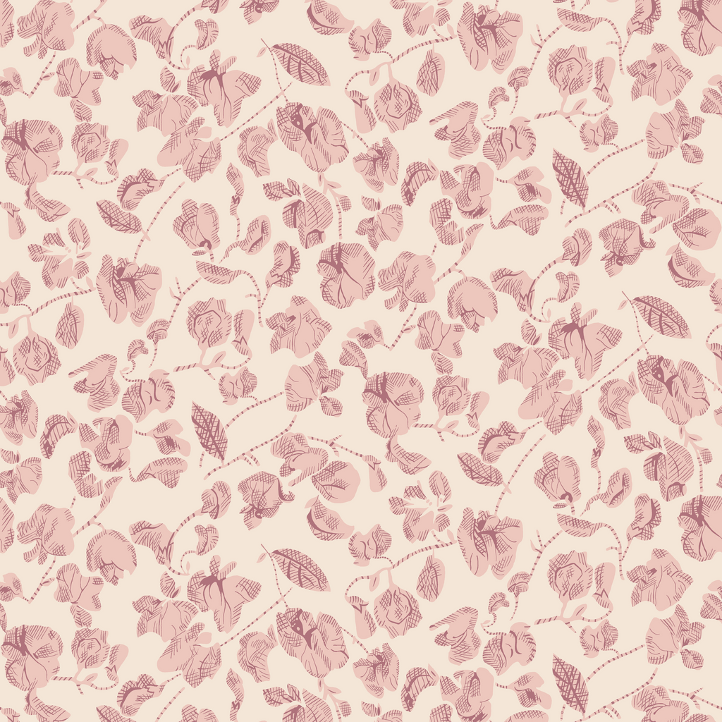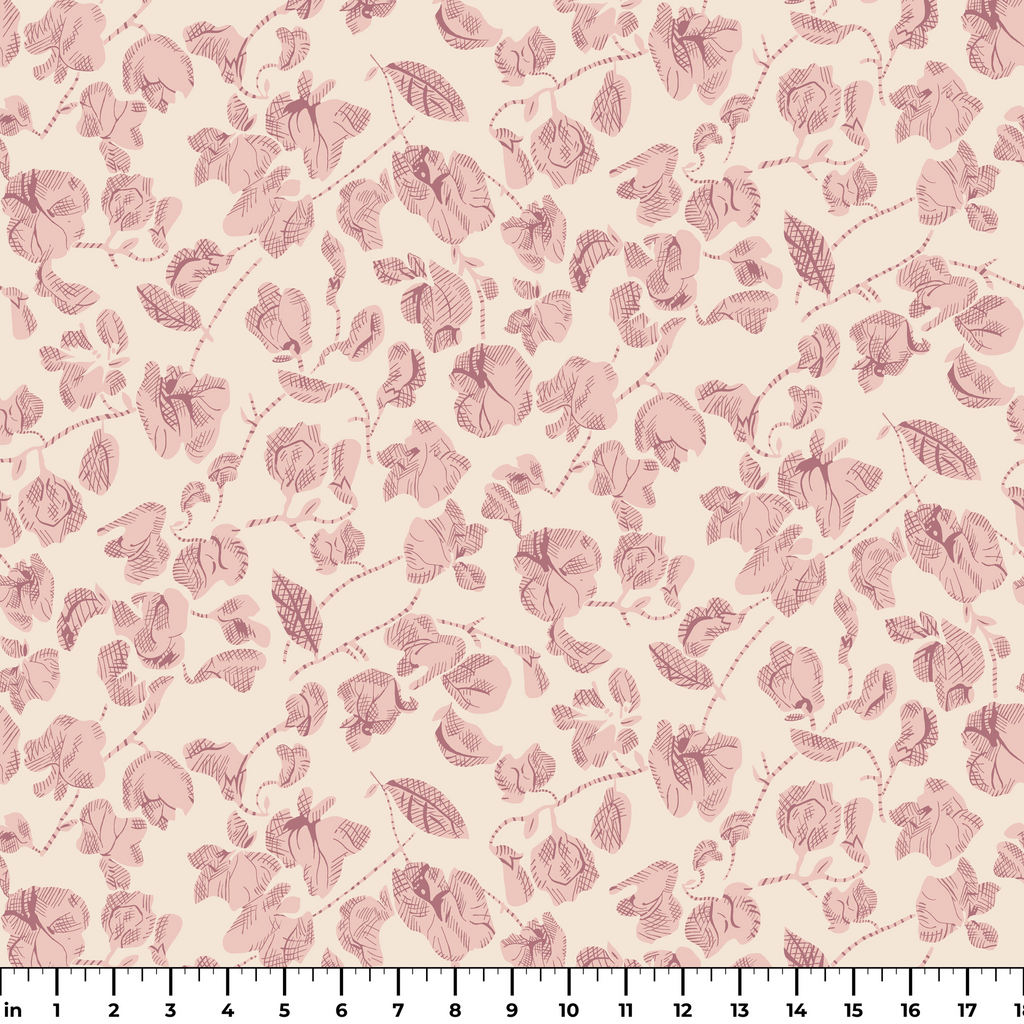 Vintage neutral floral pattern featuring delicate roses and leaves in romantic blush tones, perfect for feminine quilting projects.