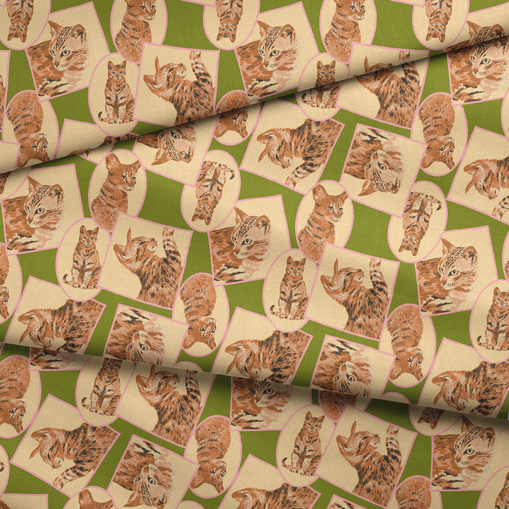 Cat Frames on Green Fabric