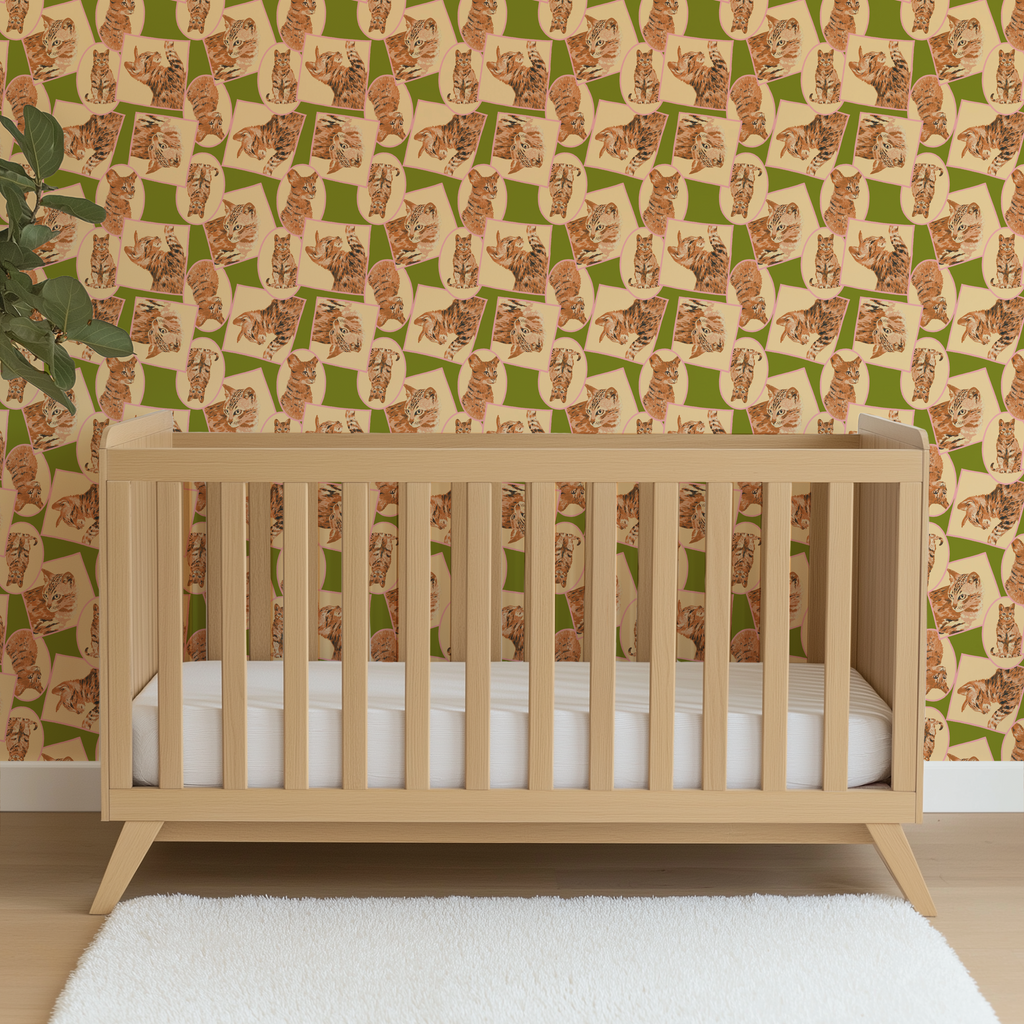 Cat Frames on Green Wallpaper