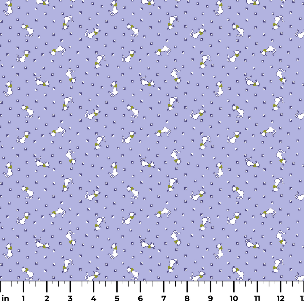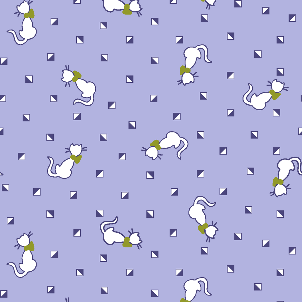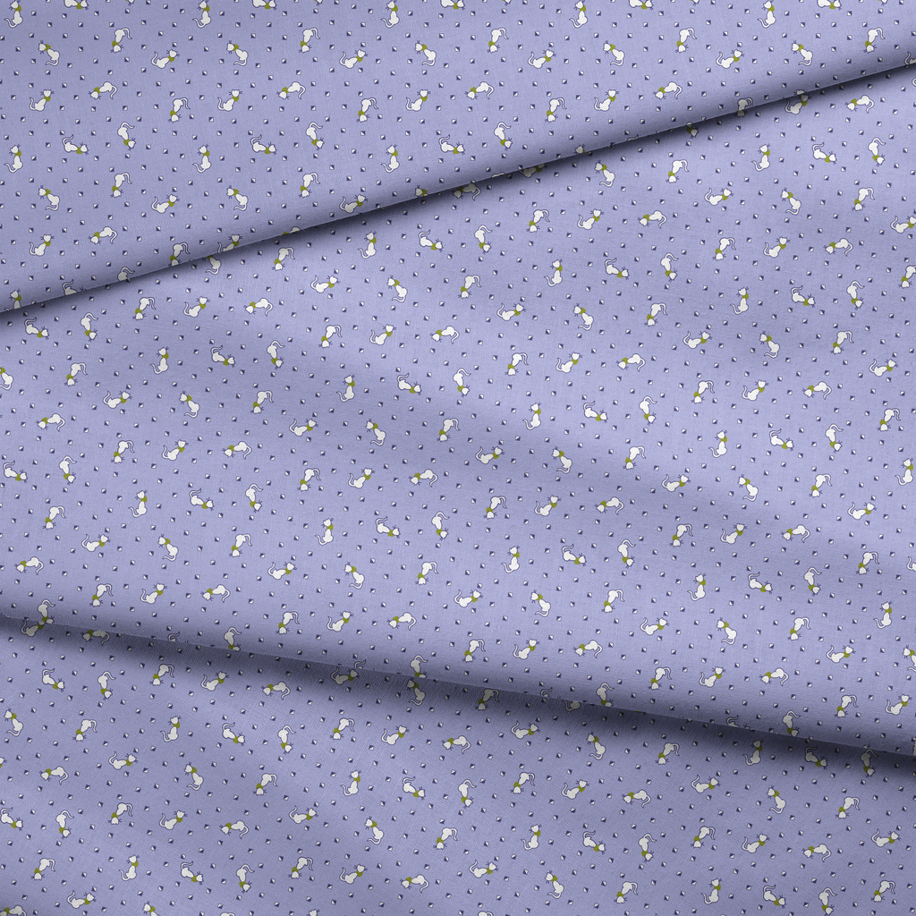 Cats Geo on Purple Fabric
