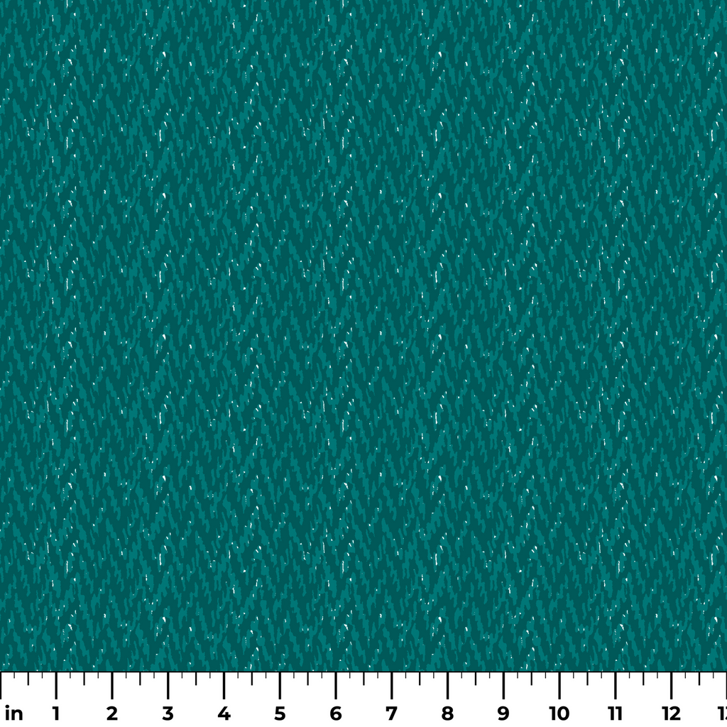 Rich dark teal pattern featuring organic flowing lines with a modern chevron aesthetic - perfect for sewing unique home decor or accessories.
