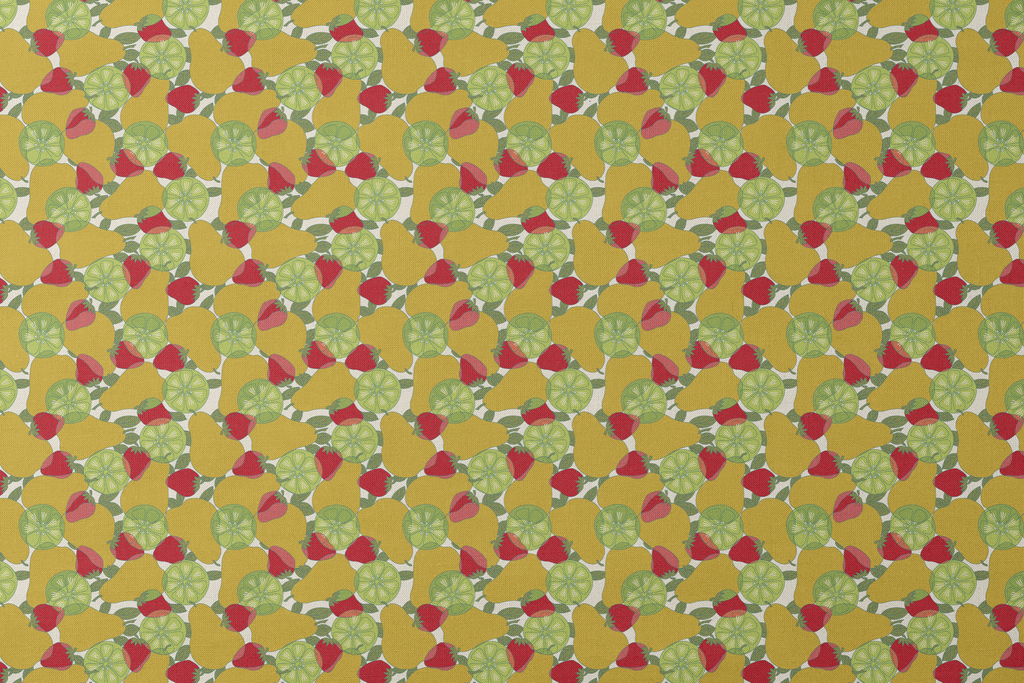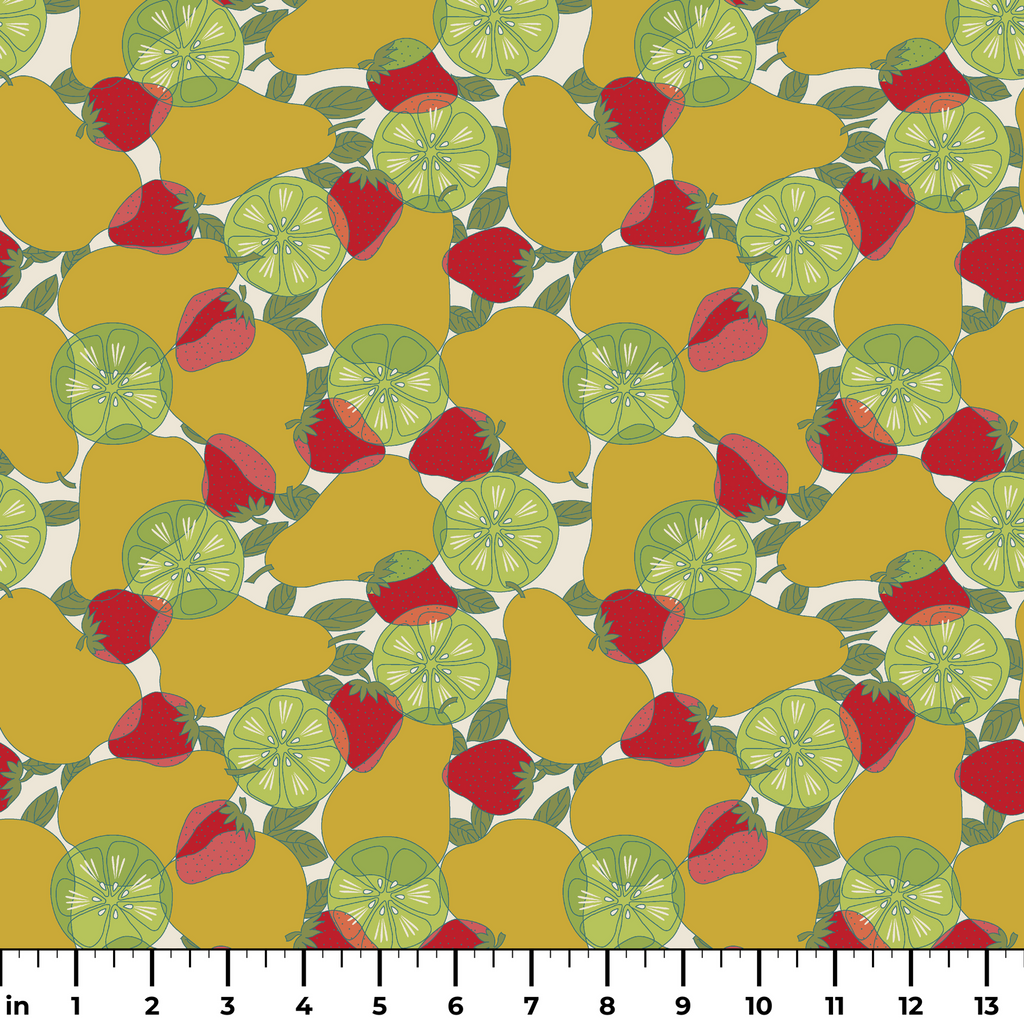 This rich, saturated design features golden tear shapes, deep red strawberries, and zesty lime slices on a clean white backdrop. The bold color palette captures the essence of a late summer harvest in full swing. Perfect for vibrant aprons or picnic accessories, it brings the joy of orchard picking straight to your craft table.