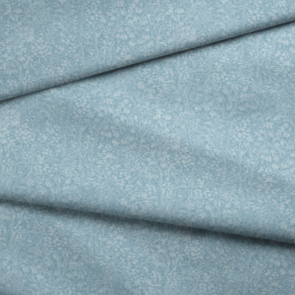 Delicate blue botanical design featuring intricate floral motifs and organic flowing vines in a soft, muted palette perfect for elegant home decor and crafting projects.