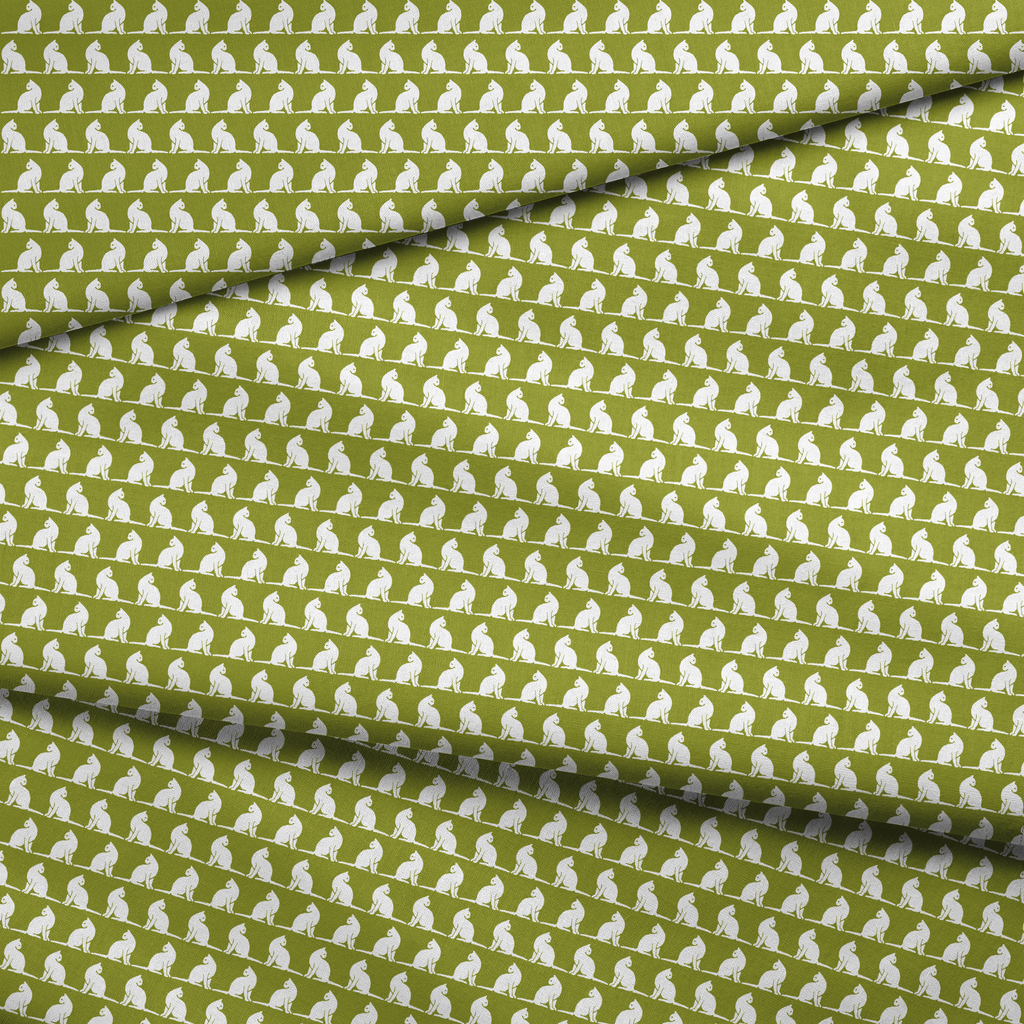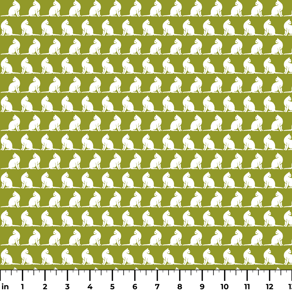 Charming green and white cat silhouette pattern featuring sitting felines in a repeating design, perfect for cat-themed home decor or apparel with vintage appeal.