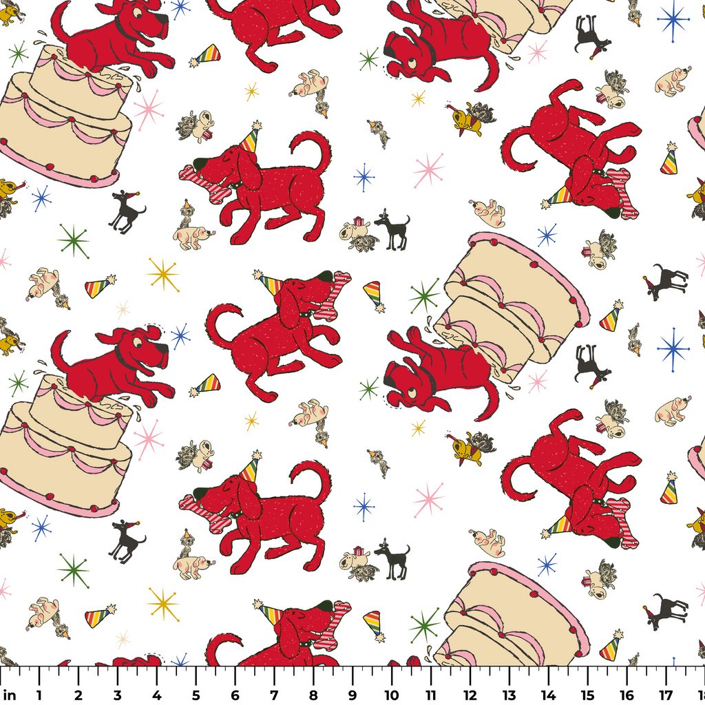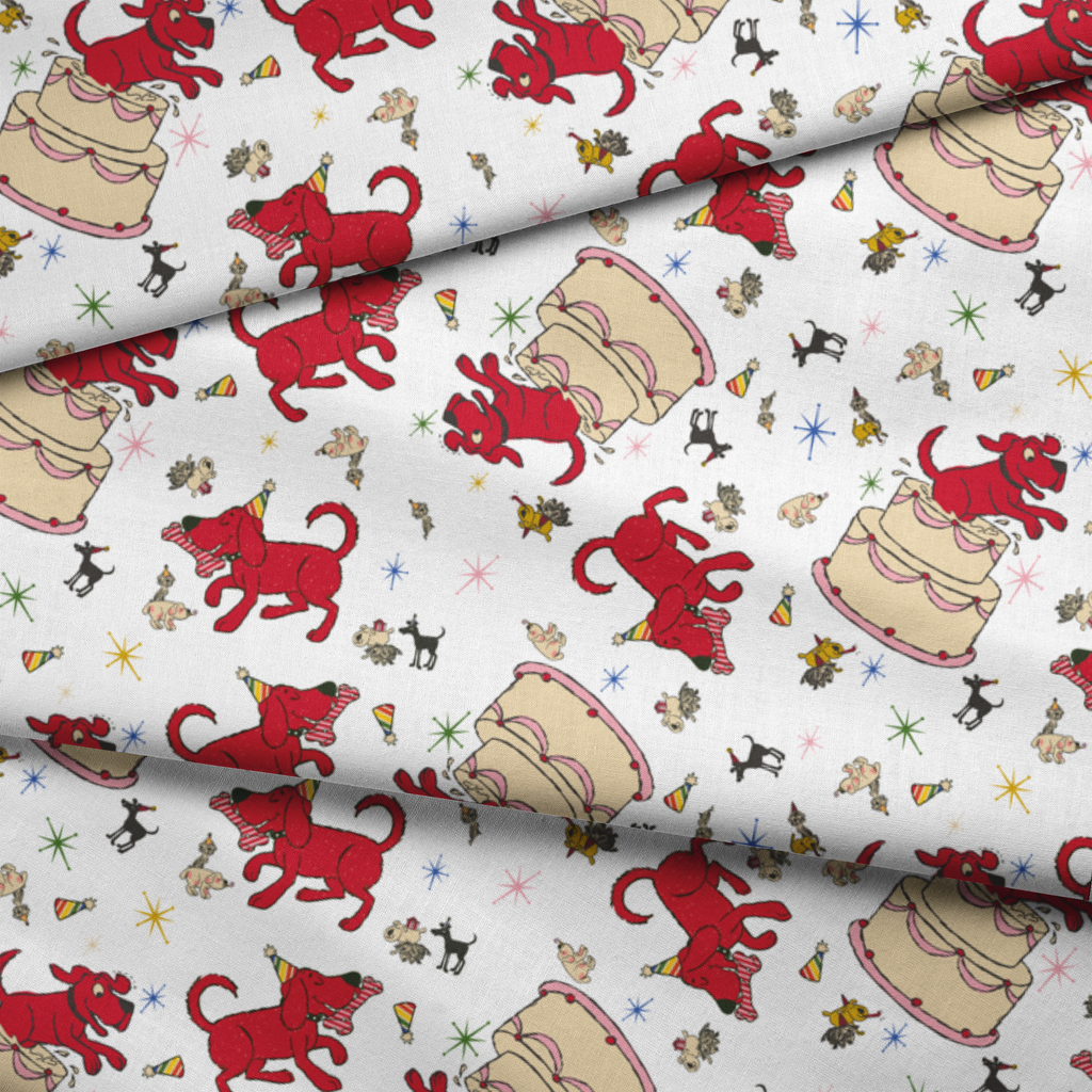 Clifford Party Animals on White Fabric