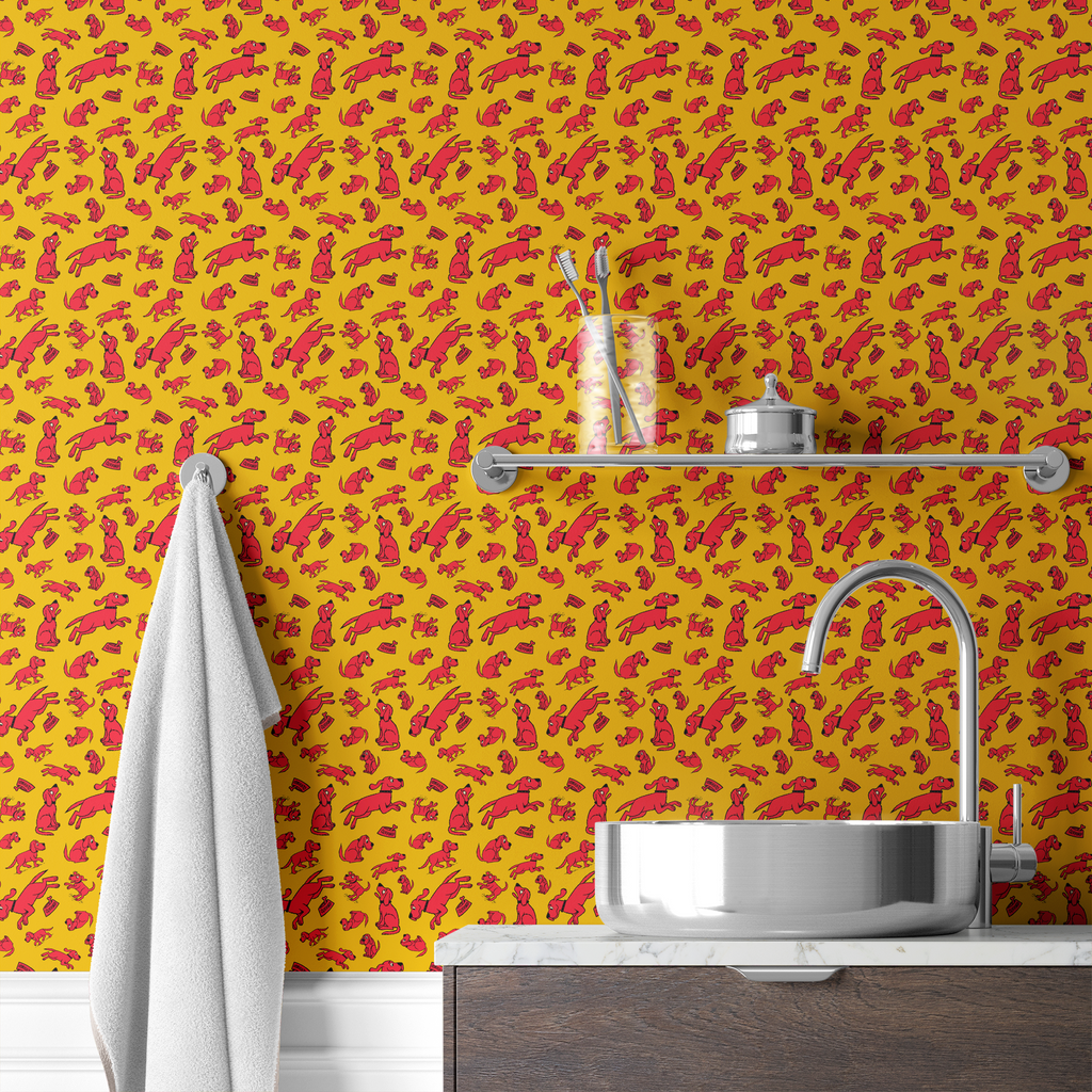 Clifford Playful Poses on Yellow Wallpaper