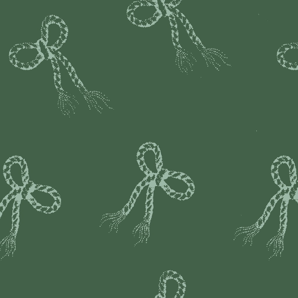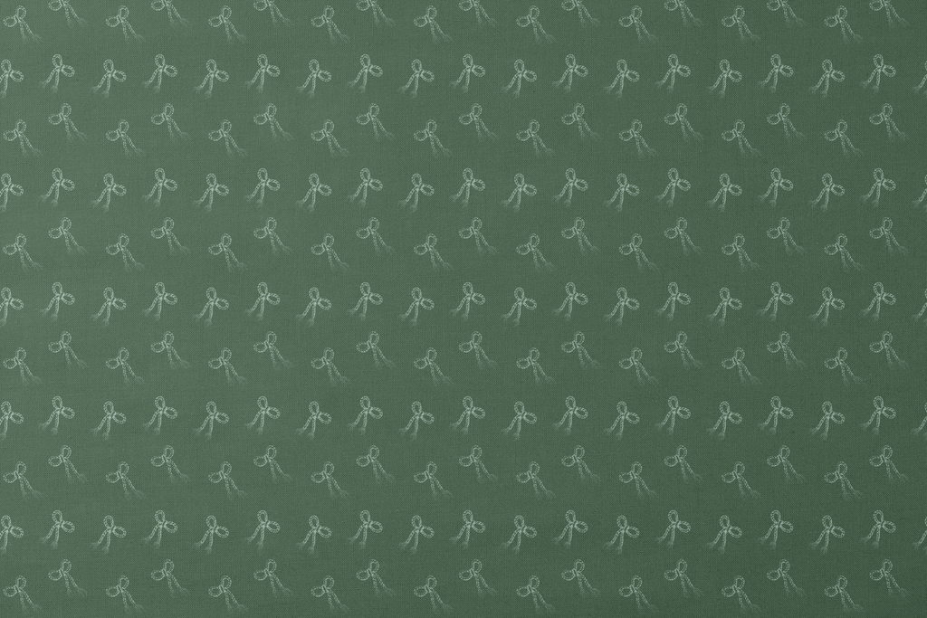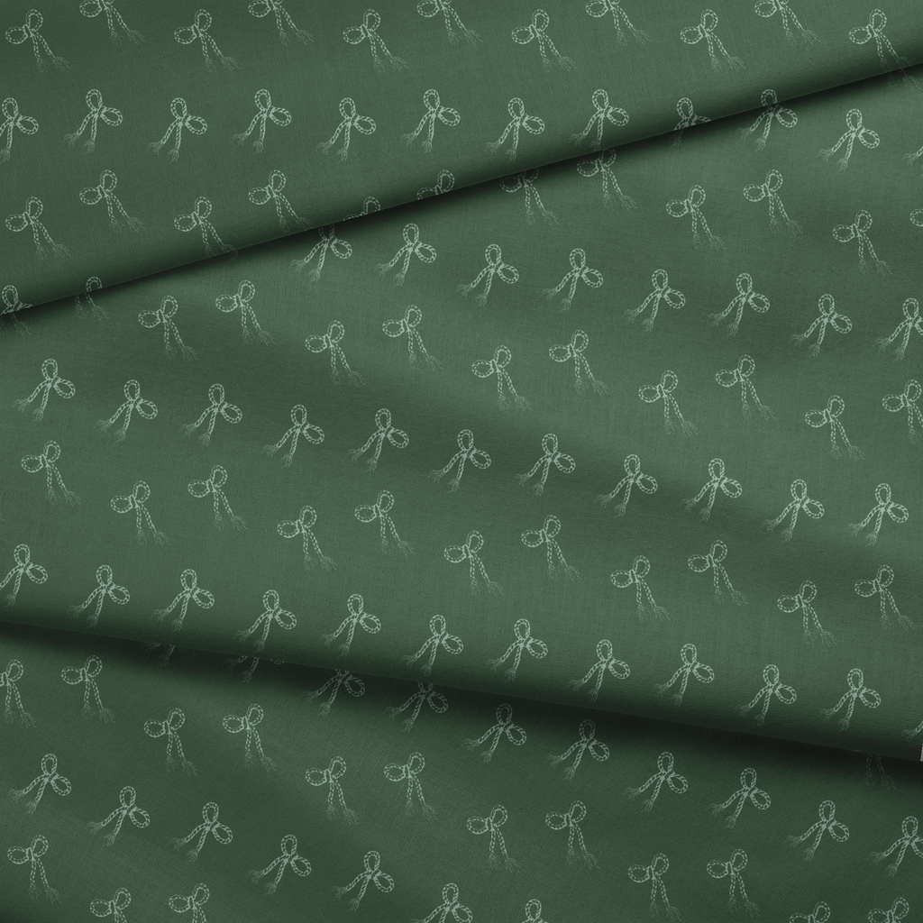 Delicate dotted ribbons in white chalk-like patterns dance across a rich green background, creating a whimsical, hand-drawn effect perfect for home decor or apparel.