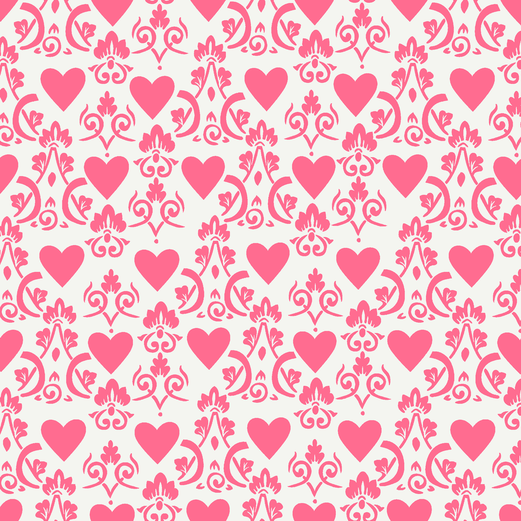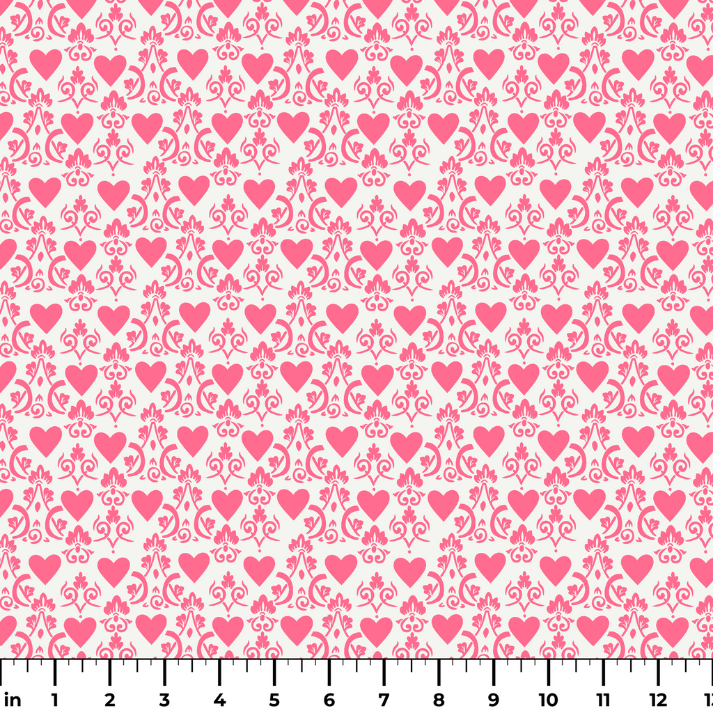 Elegant dark pink damask pattern on a cream background featuring romantic hearts and swirling vines. Perfect for Valentine's Day decor, wedding accents, or feminine apparel with its sweet, whimsical charm.