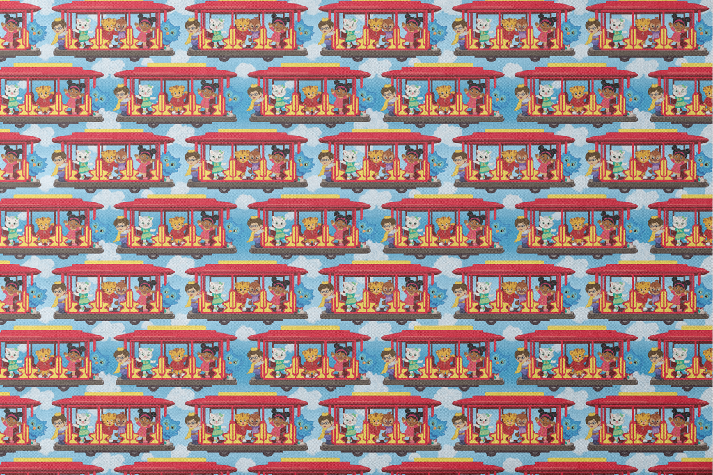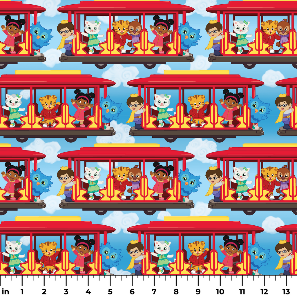 Daniel Tiger and Friends with Trolley on Blue Fabric