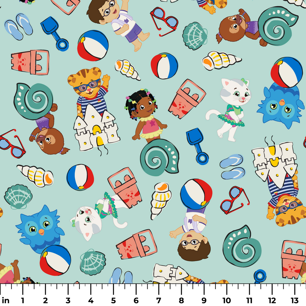 Daniel Tiger Sandcastle Fun on Aqua Fabric