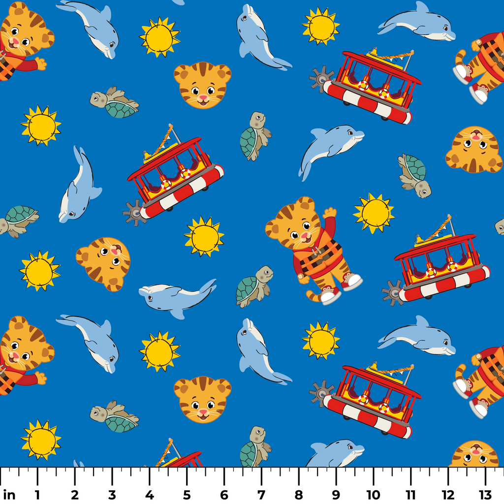 Daniel Tiger Trolley Boat Adventure on Blue Fabric