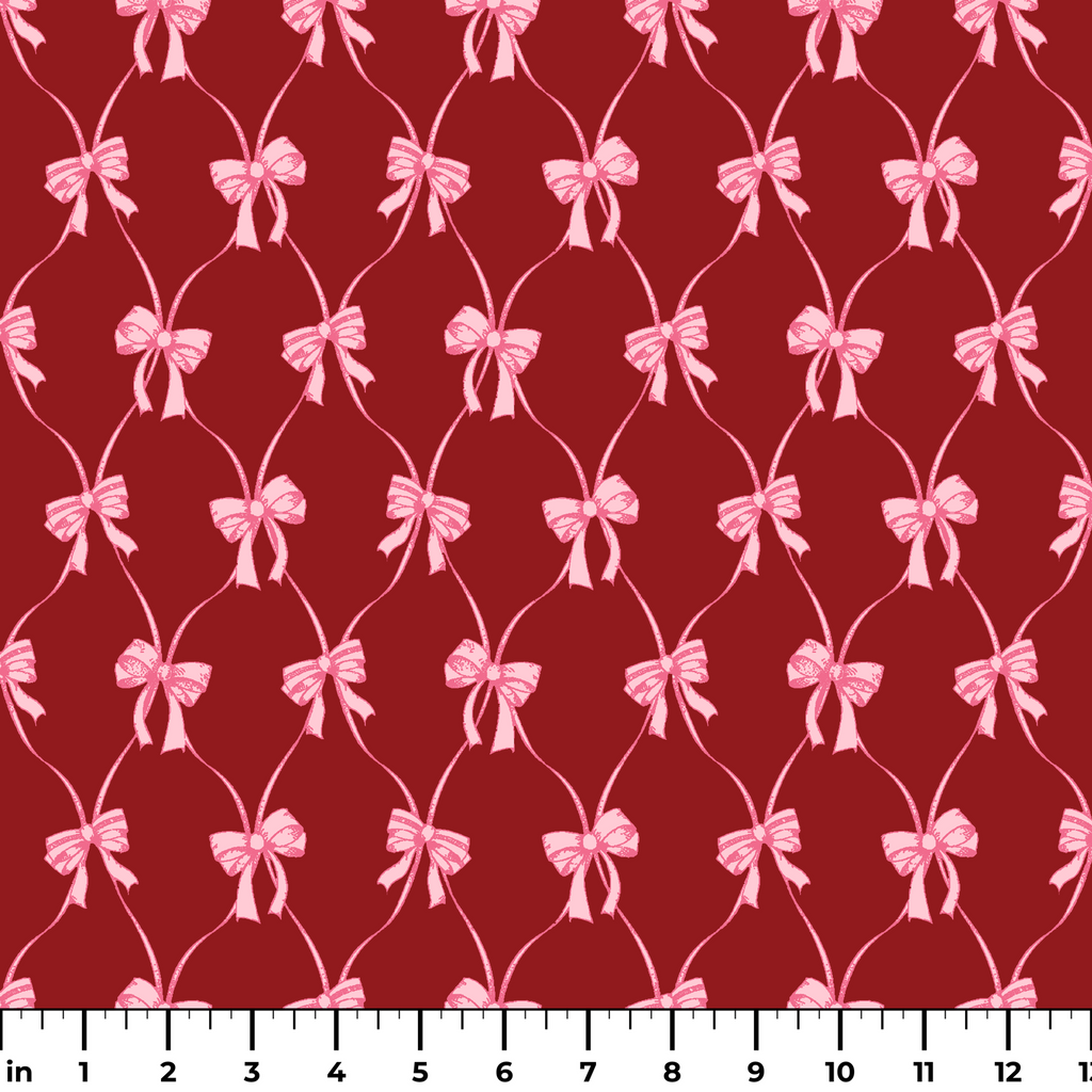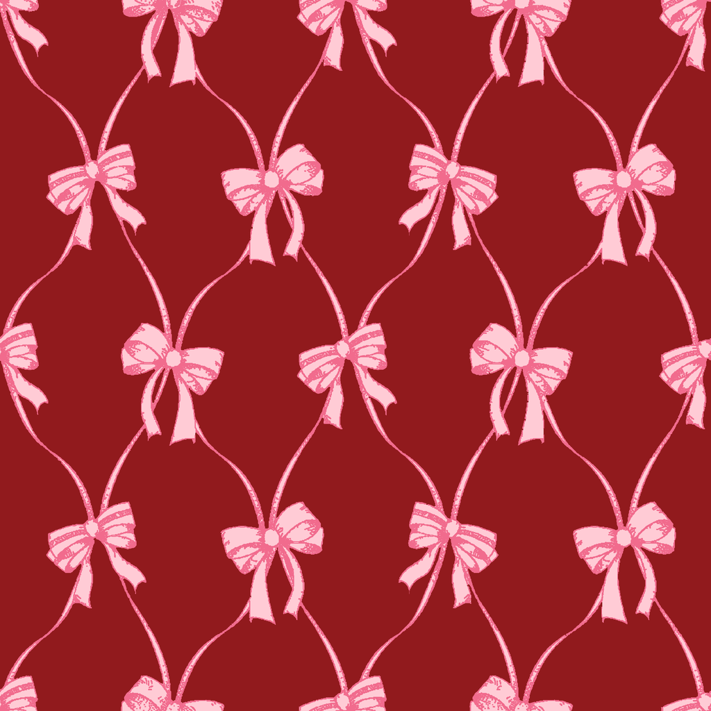 Elegant pink bows on a rich burgundy background create a romantic, feminine pattern perfect for Valentine's Day celebrations or classic home decor and apparel.