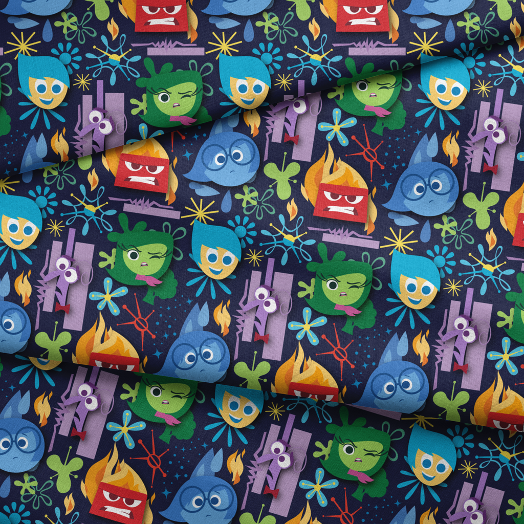 Disney and Pixar's Inside Out Dark Blue Bold Emotions Fabric