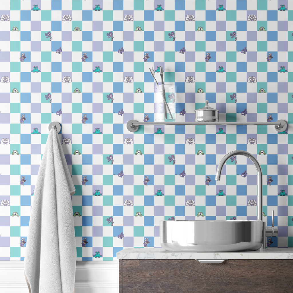 Disney and Pixar's Monsters Inc Pastel Checkerboard Wallpaper