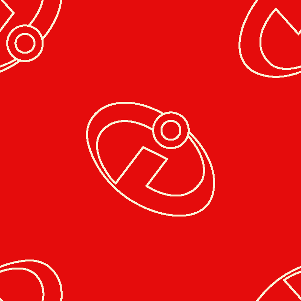 Iconic minimalist outline design featuring Disney and Pixar's The Incredibles logo on a vibrant red background. Perfect for fans of the beloved Pixar superhero family in a contemporary, geometric style.
