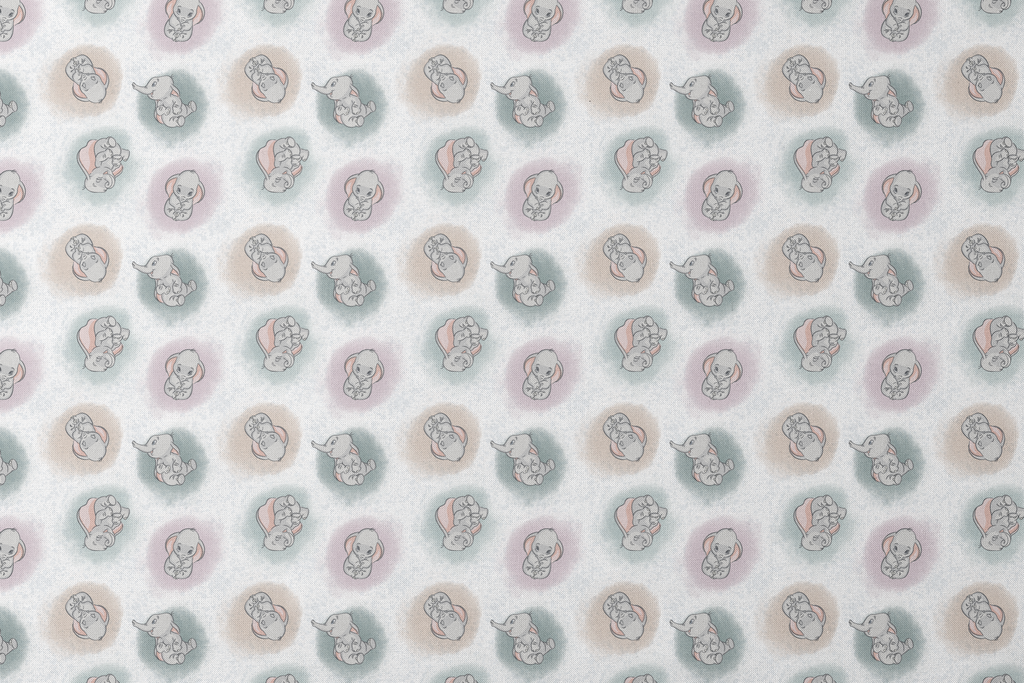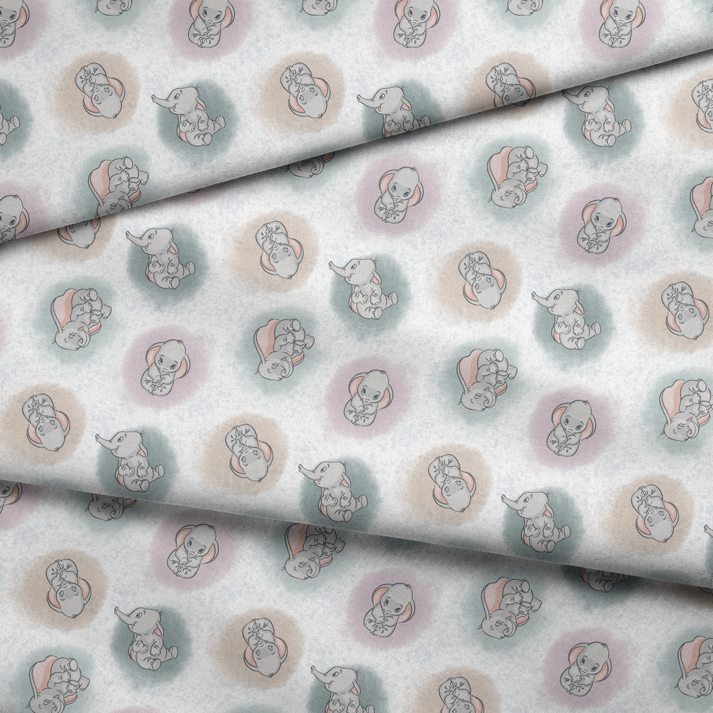 Whimsical Dumbo pattern featuring adorable baby elephants in soft pastel colors. Perfect for nursery decor, baby clothing, or children's accessories with its gentle, playful design.