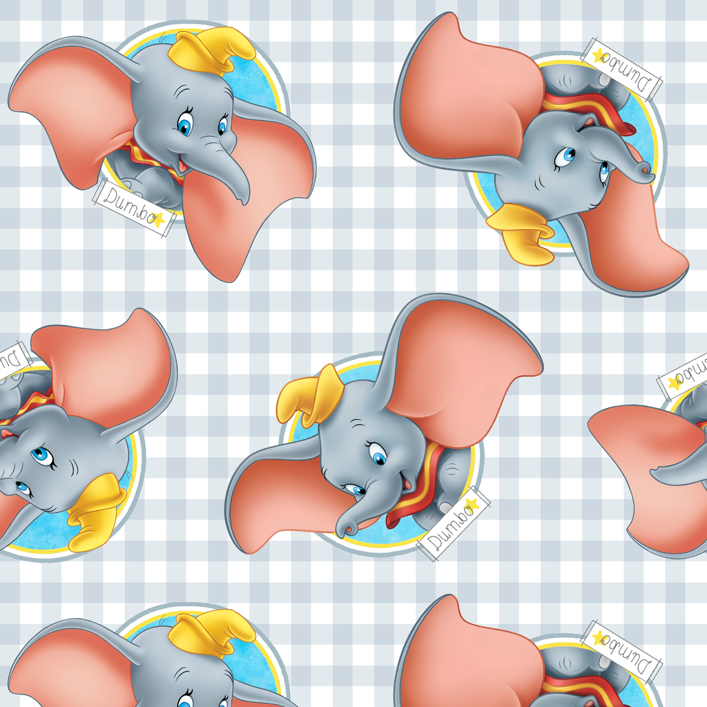Adorable Disney Dumbo pattern featuring cute grey check that is perfect for nursery decor or children's apparel.