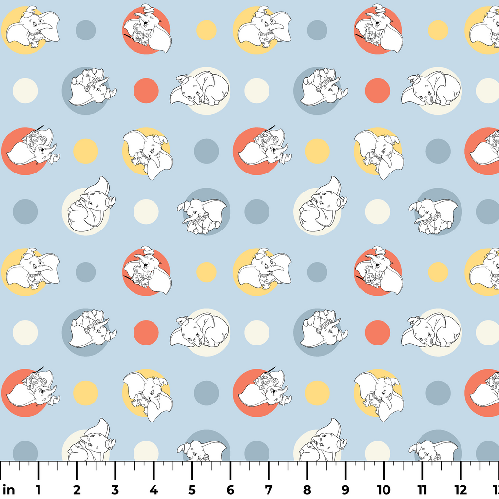 Disney Dumbo Cute Polka Dot Pattern on Light Blue Fabric