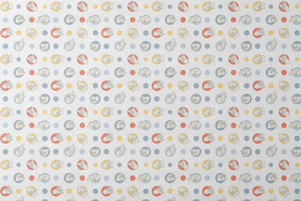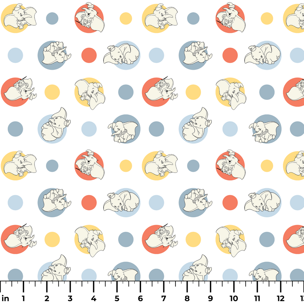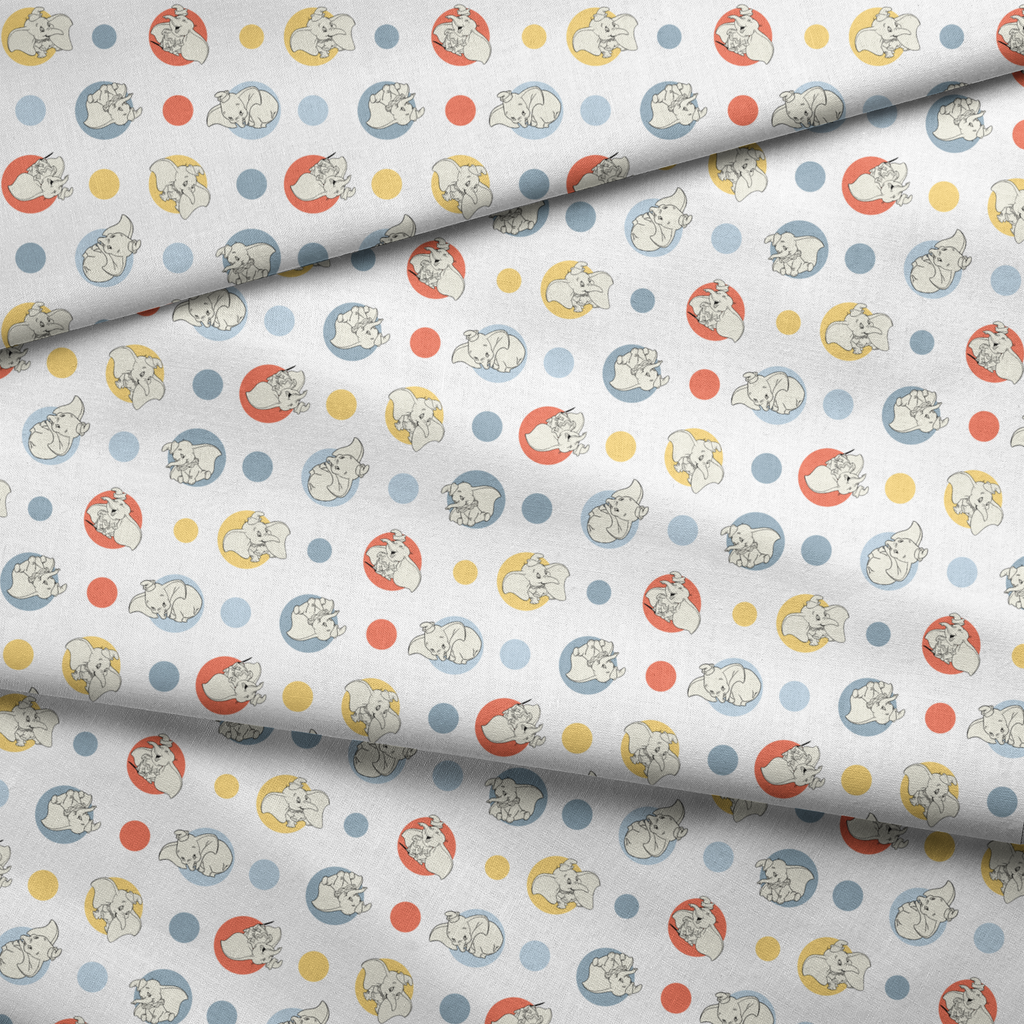 Disney Dumbo Cute Polka Dot Pattern on White Fabric