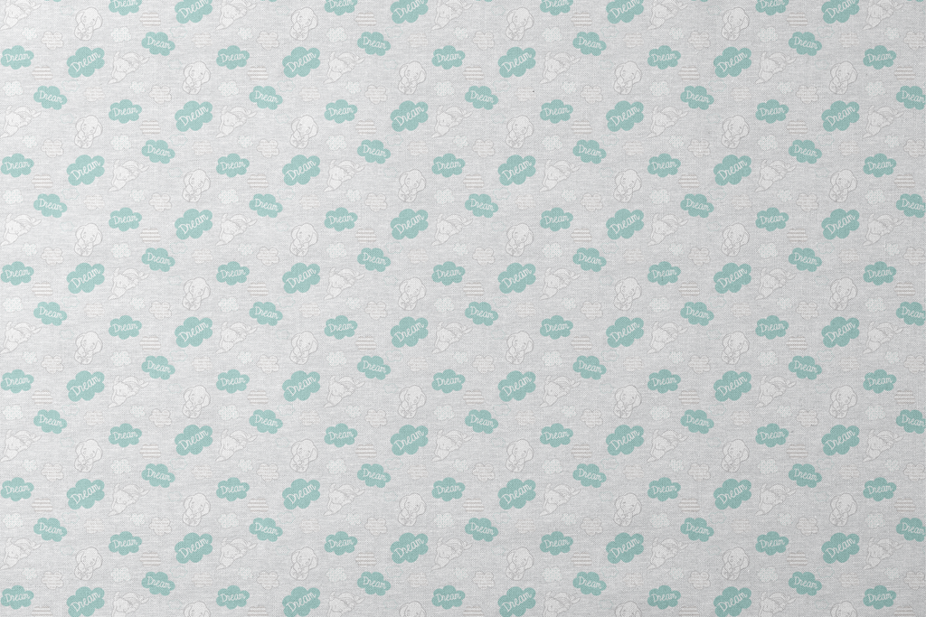 Sweet dreamy Dumbo nursery pattern featuring adorable Dumbo in soft teal and white tones. Perfect for baby bedding, creating a soothing atmosphere for little ones to drift off to sleep.