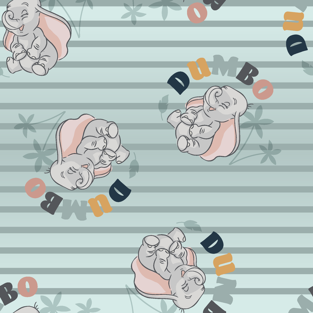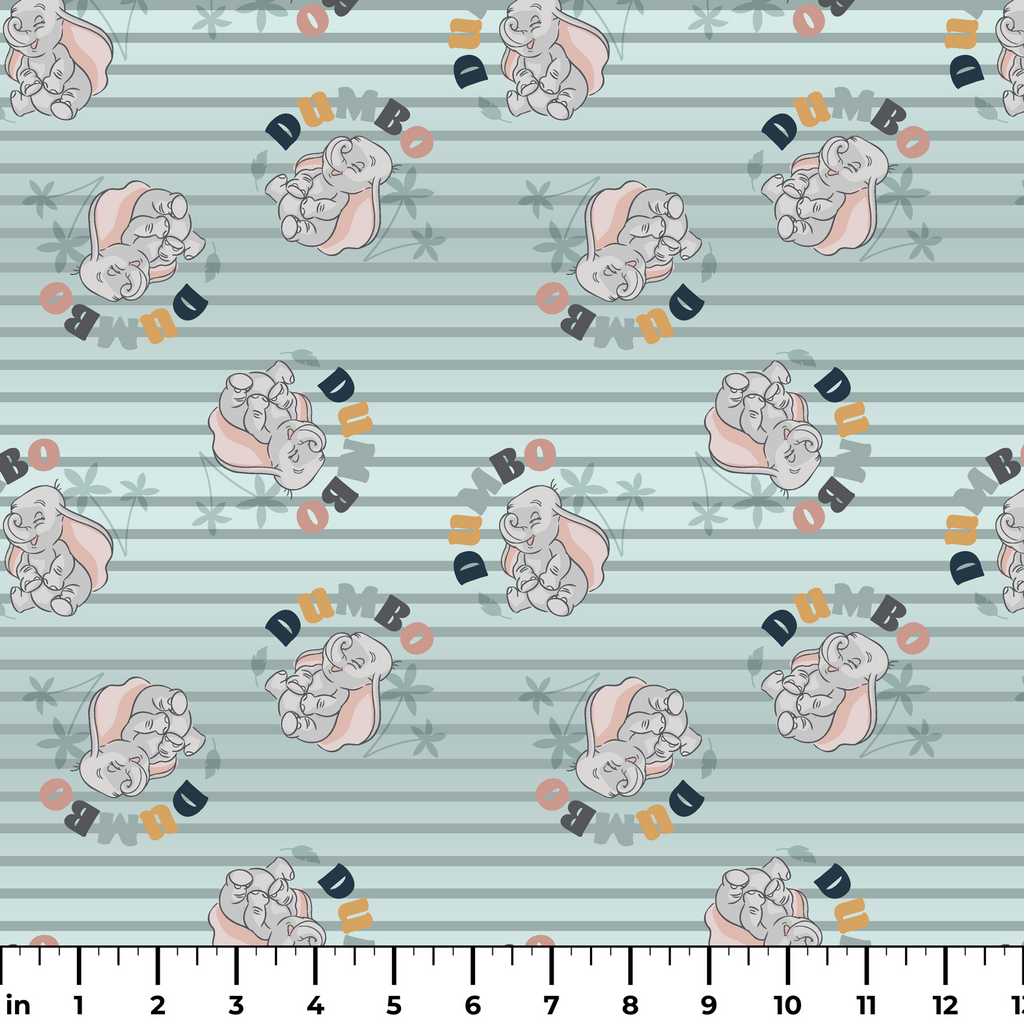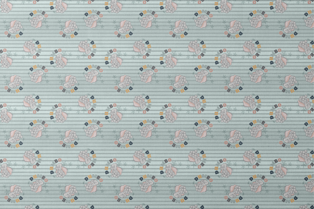Disney Dumbo Pattern on Mint Stripes Fabric