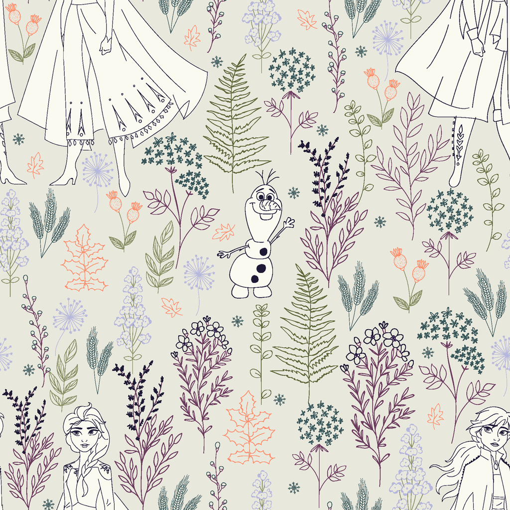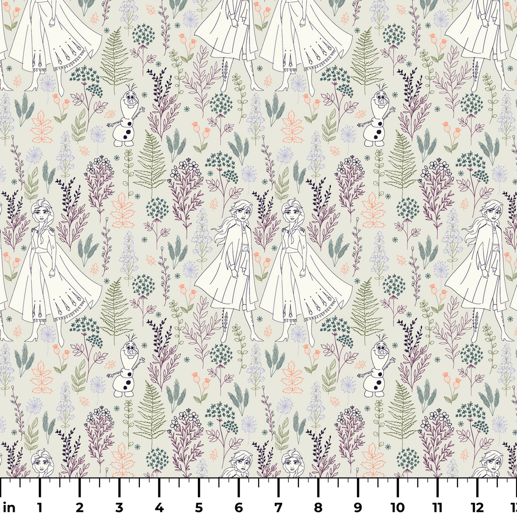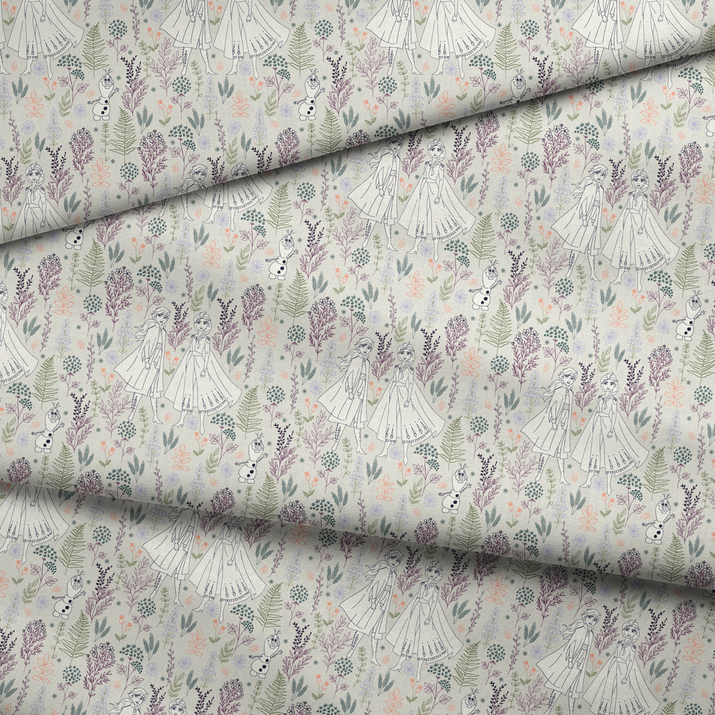 Disney Frozen Botanical Floral on Cream Fabric