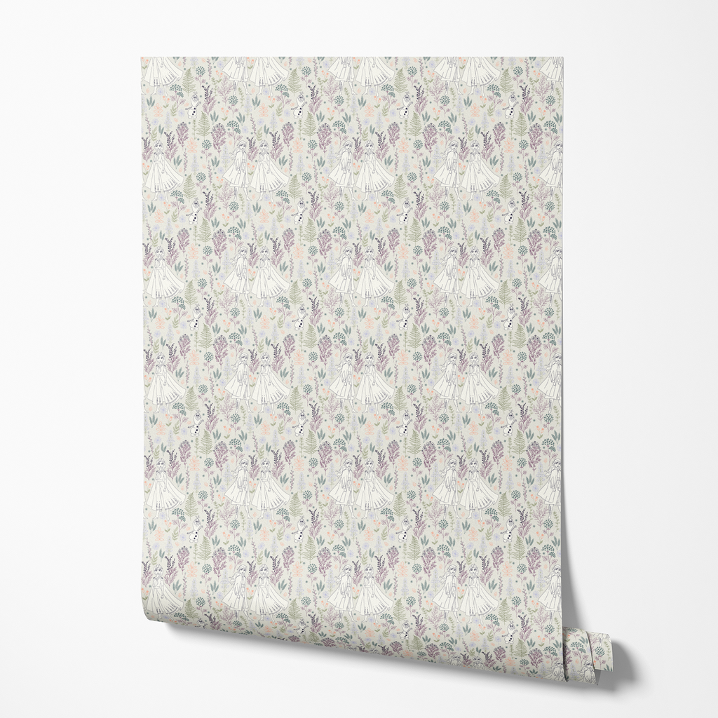 Disney Frozen Botanical Floral on Cream Wallpaper