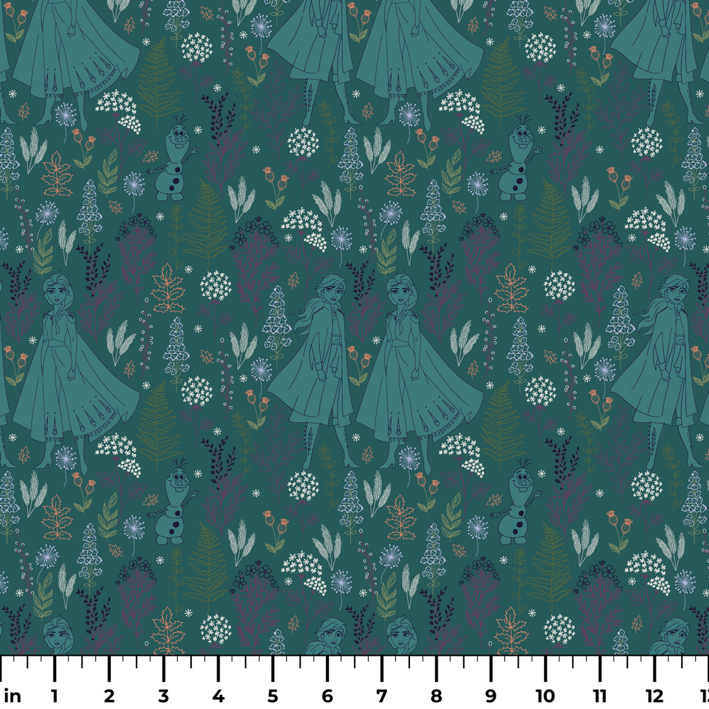 Disney Frozen Botanical Floral on Teal Fabric